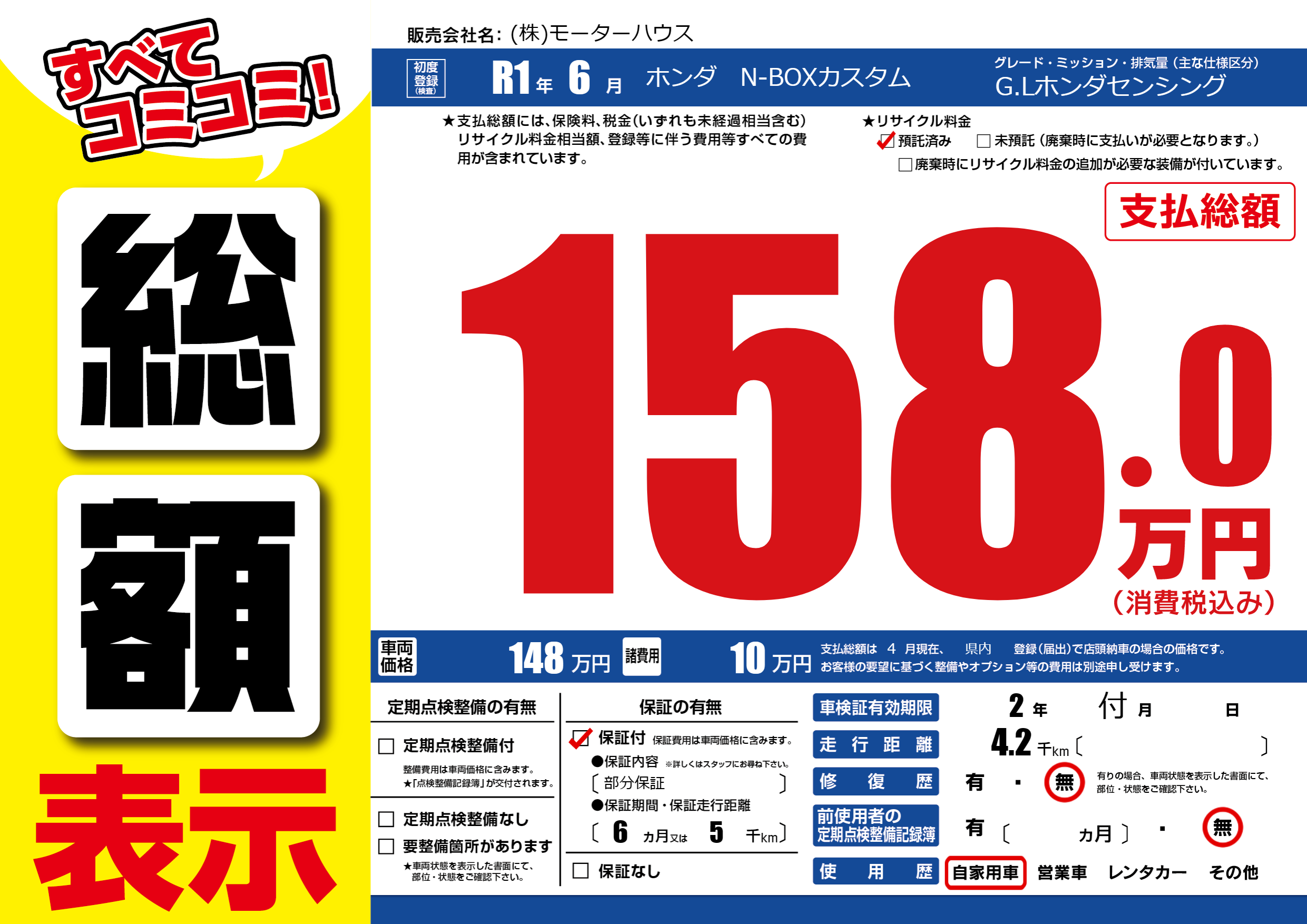 | 走行キロ | 0.4万km | 初年度登録 | R1年6月 |