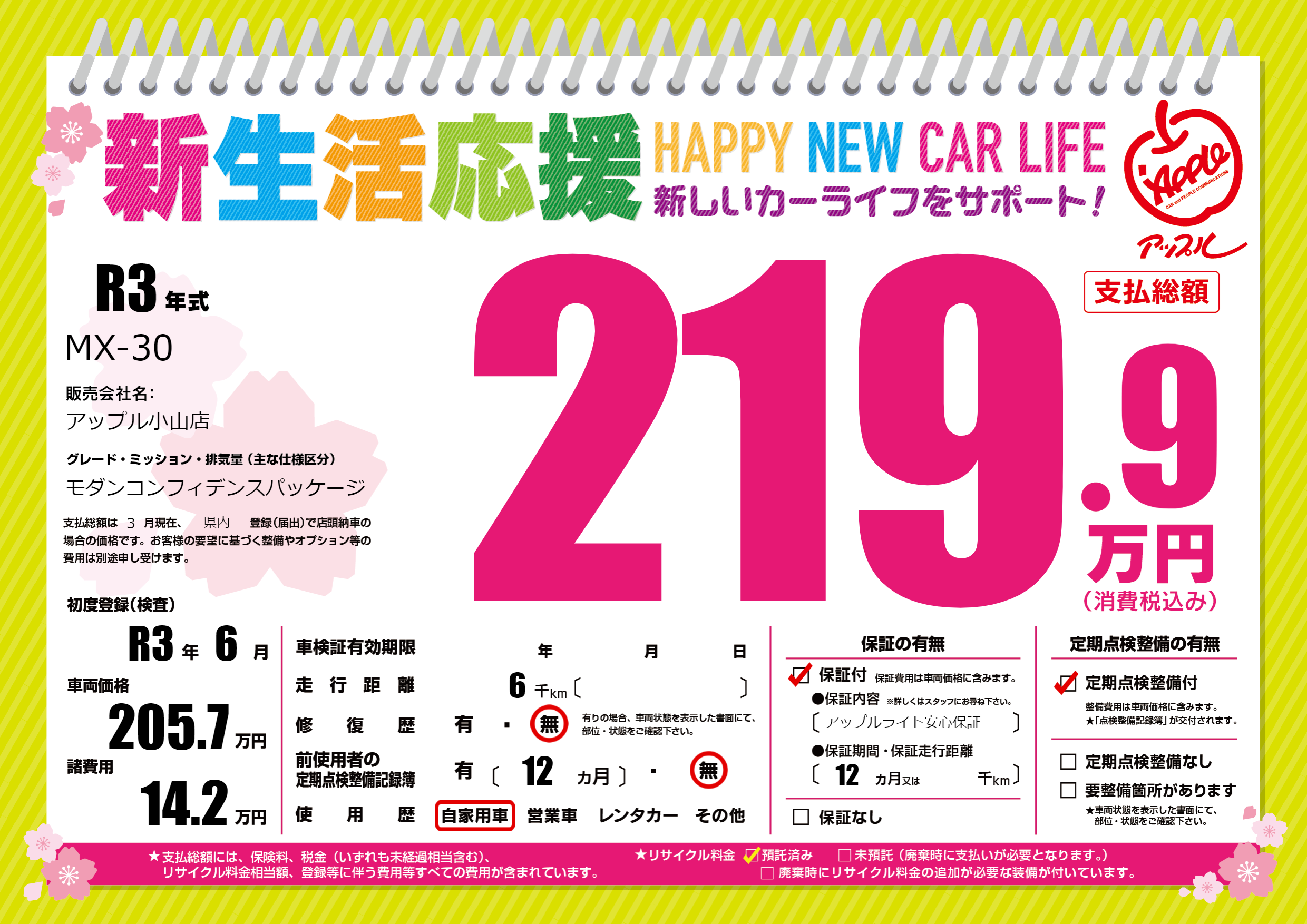 | 車名 | MX-30 | グレード ミッション 排気量 |