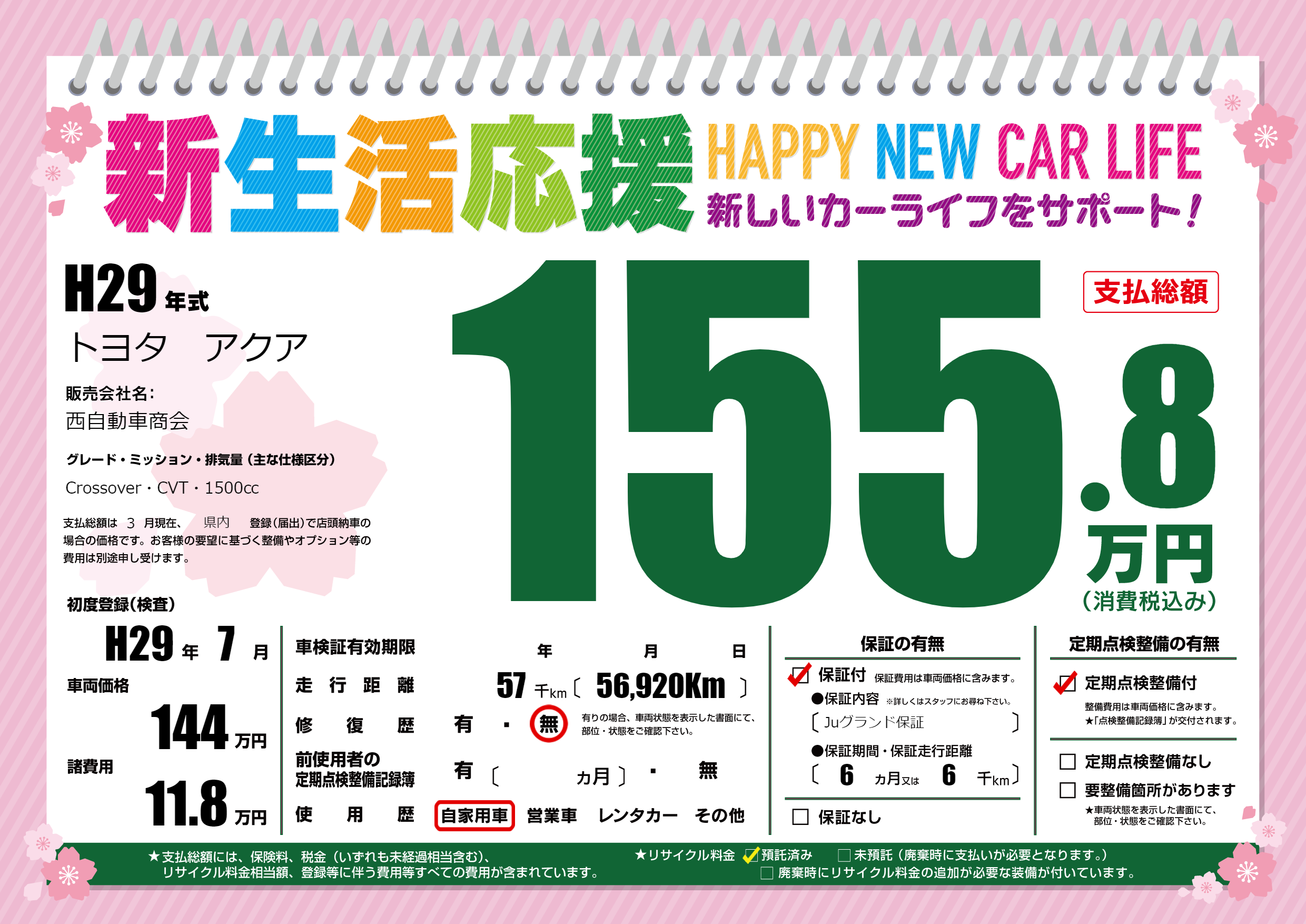 | 車検制限 | - 年 - 月 - 日 | ||