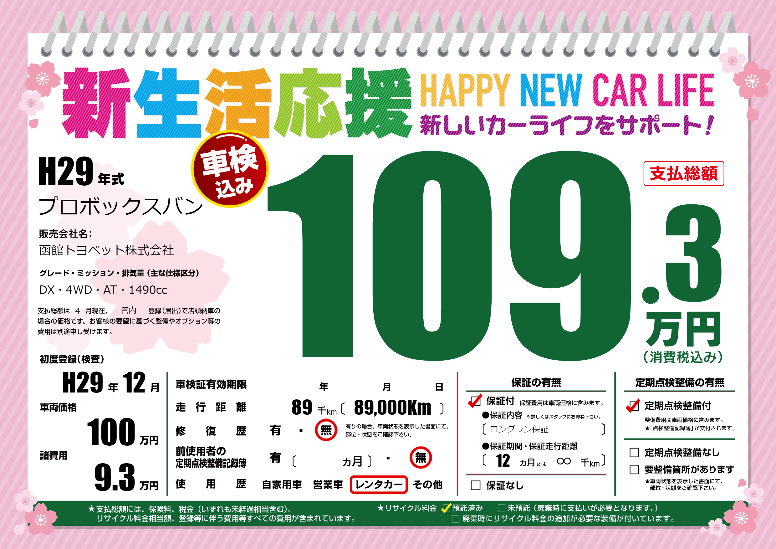 | 定期点検整備 | 定期点検整備あり | ||