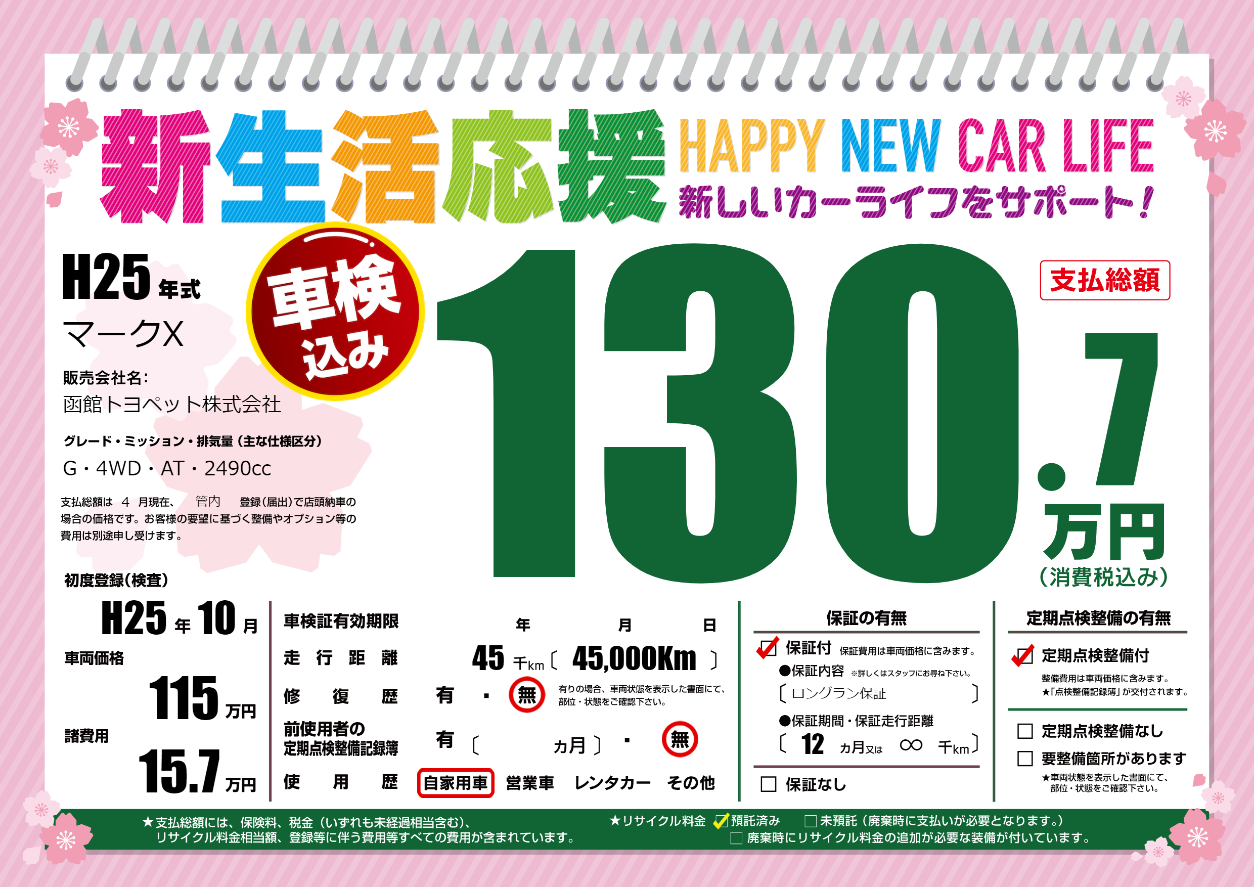| 走行キロ | 4.5万km | 初年度登録 | H25年10月 |