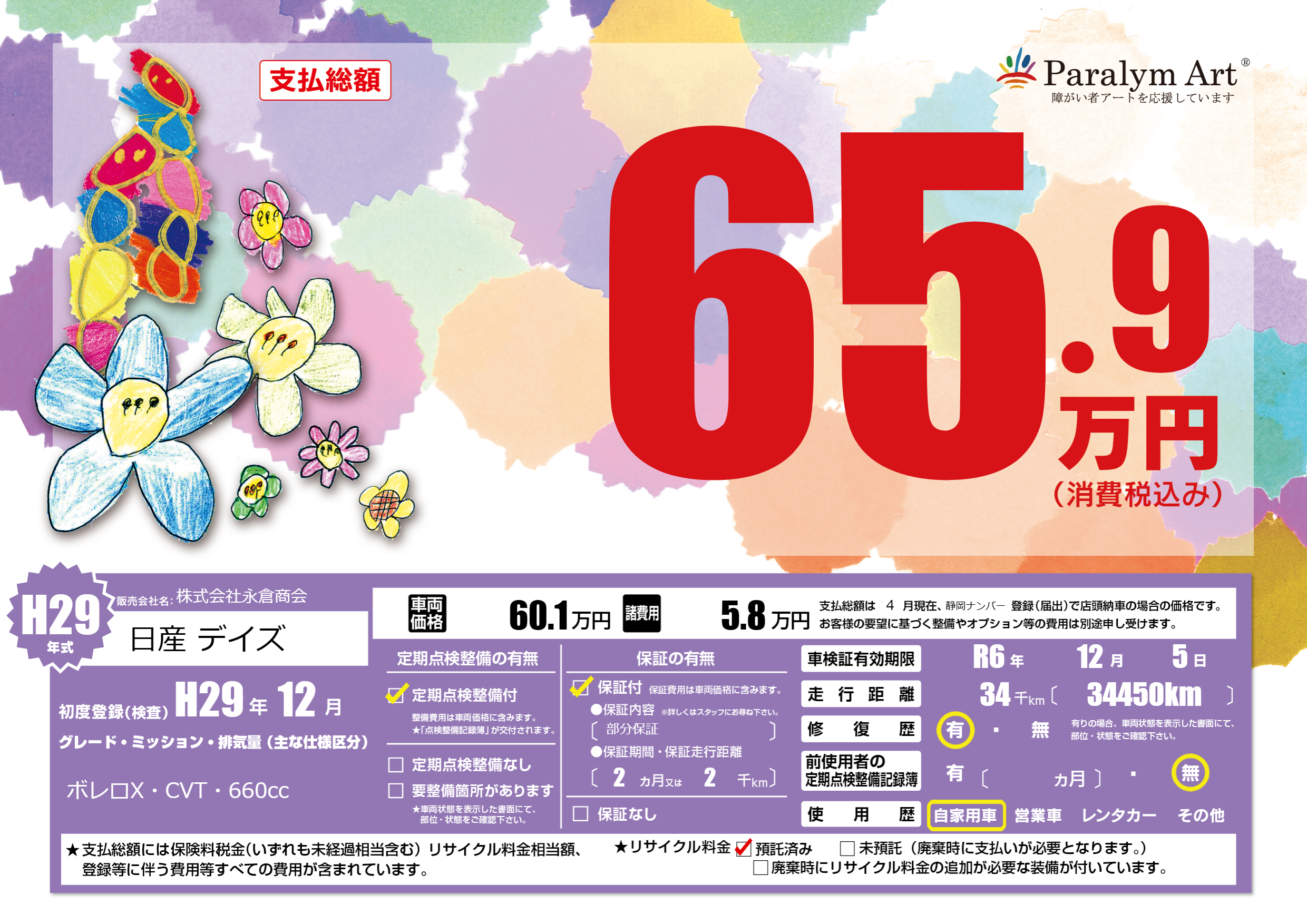 | 車名 | 日産 デイズ | グレード ミッション 排気量 |