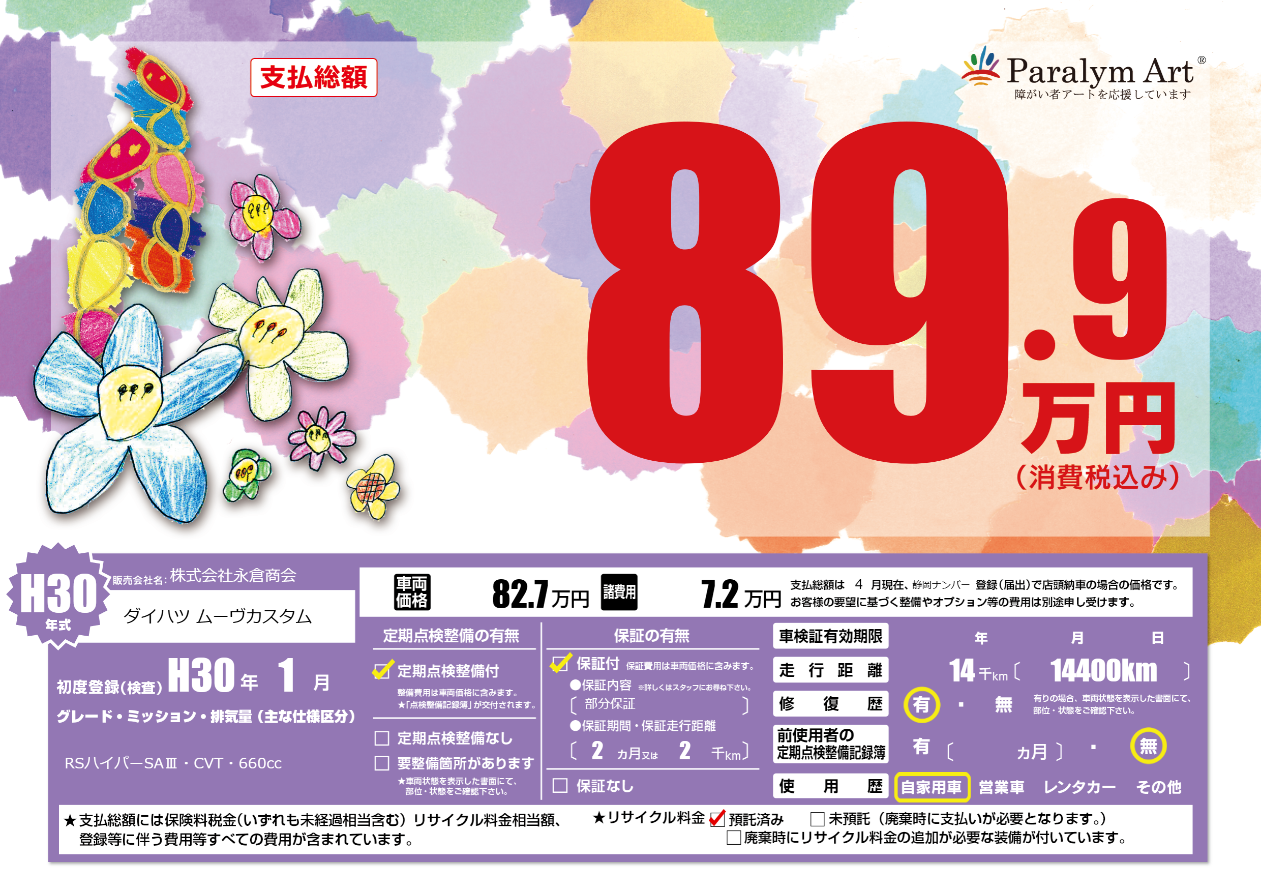 | 走行キロ | 1.4万km | 初年度登録 | H30年1月 |