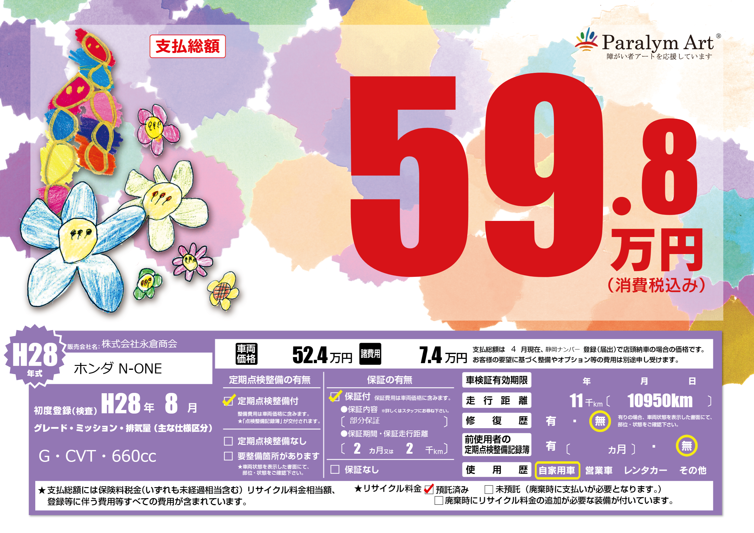 | 車名 | ホンダ N-ONE | グレード ミッション 排気量 |