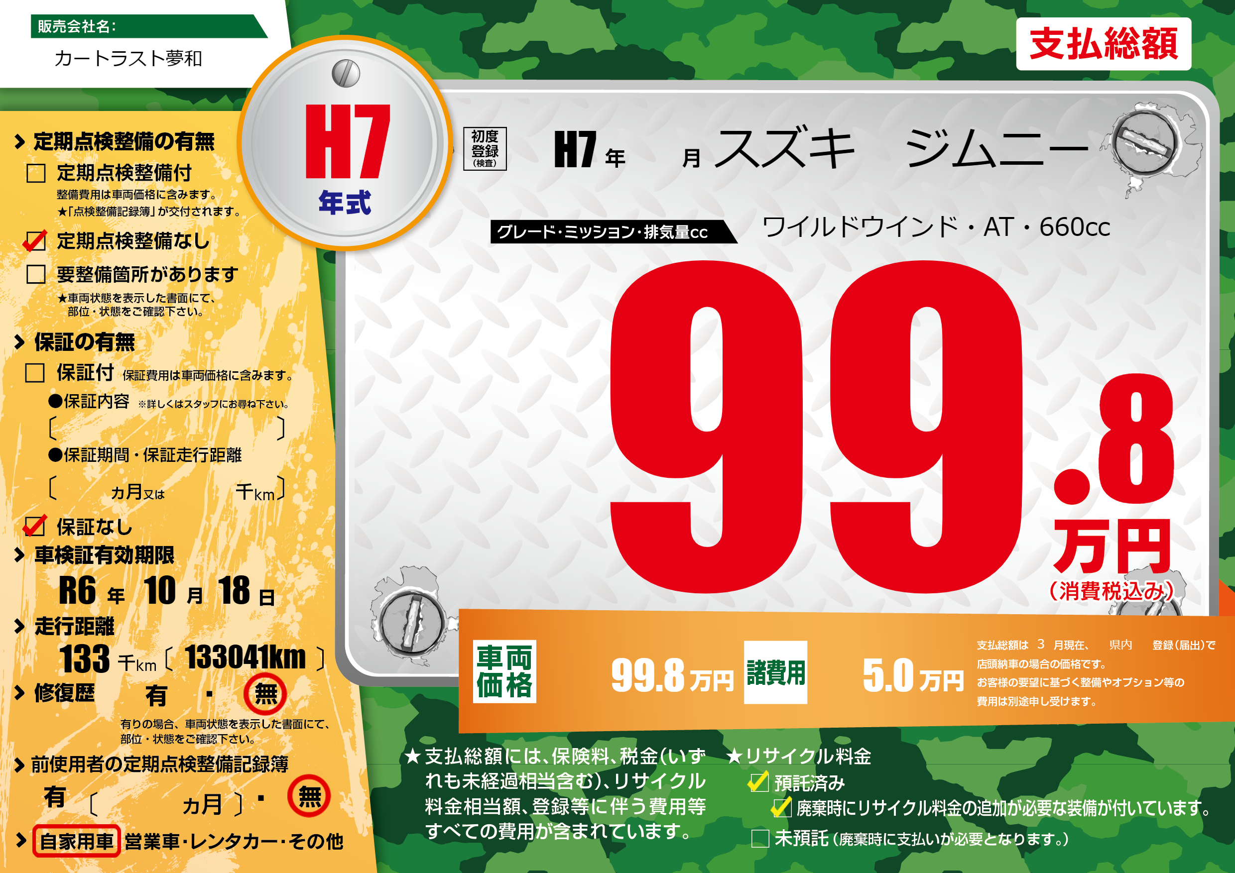 | 車検制限 | R6年 10月 18日 | ||
