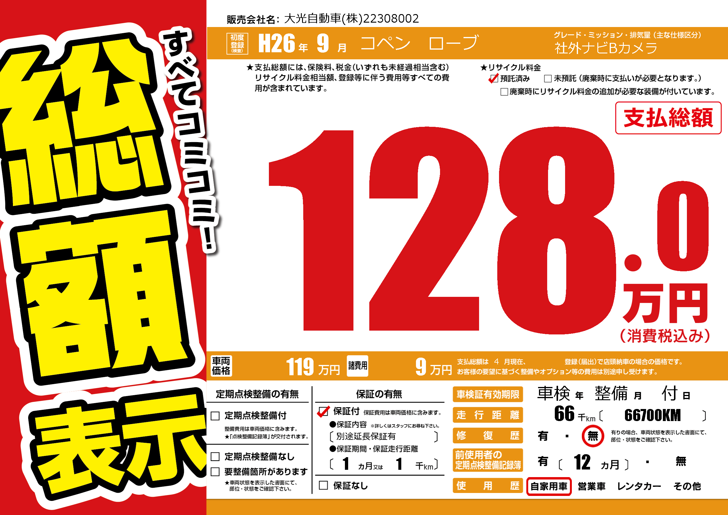 | 車名 | コペン ローブ | グレード ミッション 排気量 |