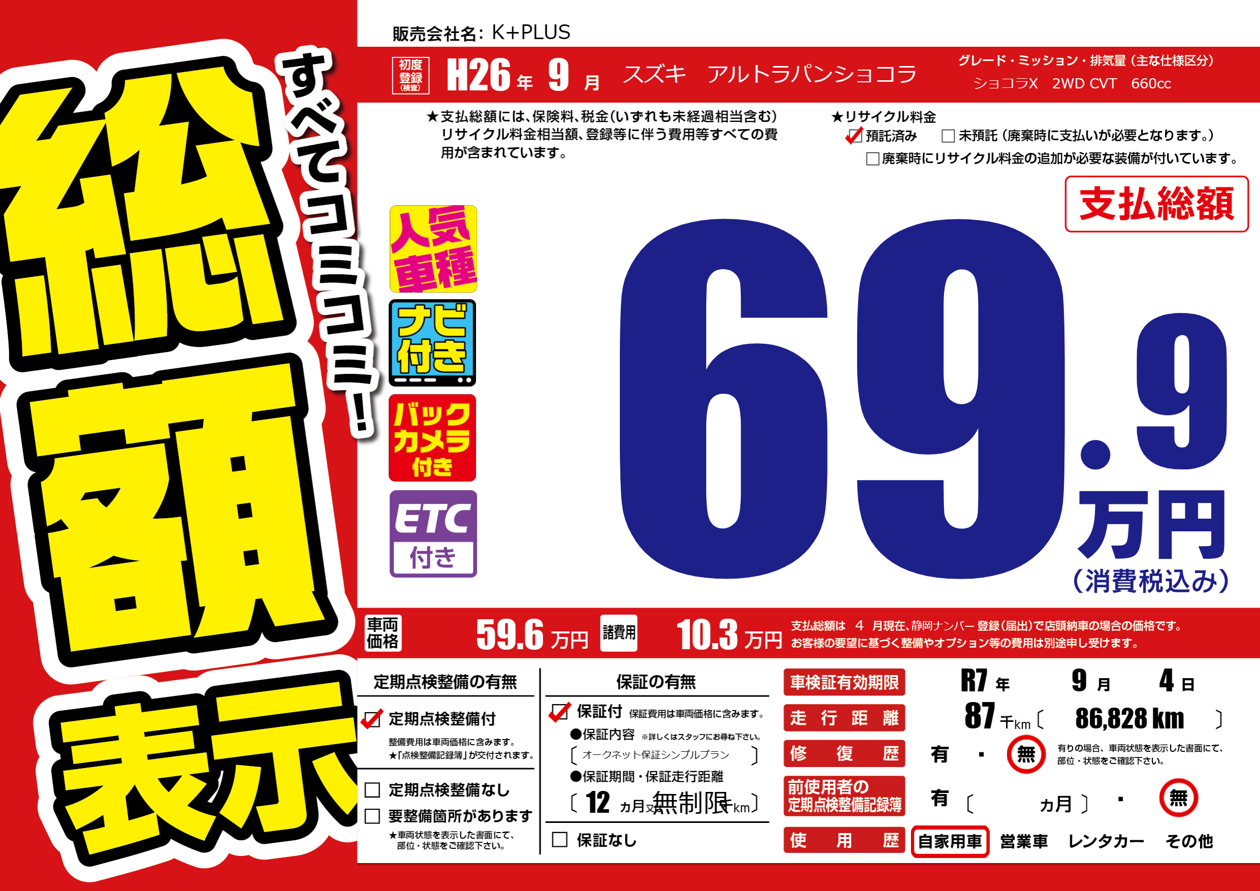 なし | 車検制限 | R7年9月4月 |