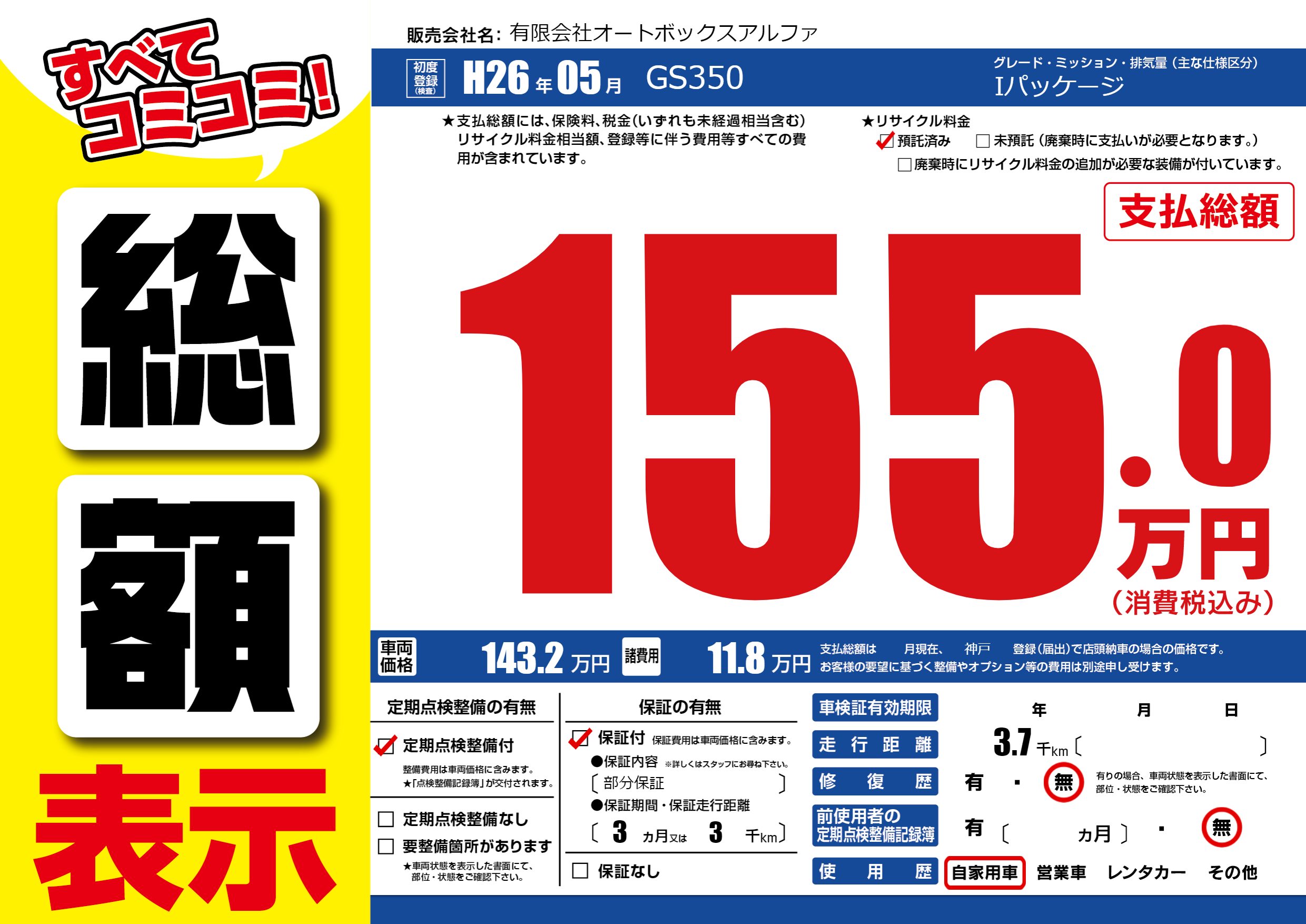| 車名 | GS350 | グレード ミッション 排気量 |