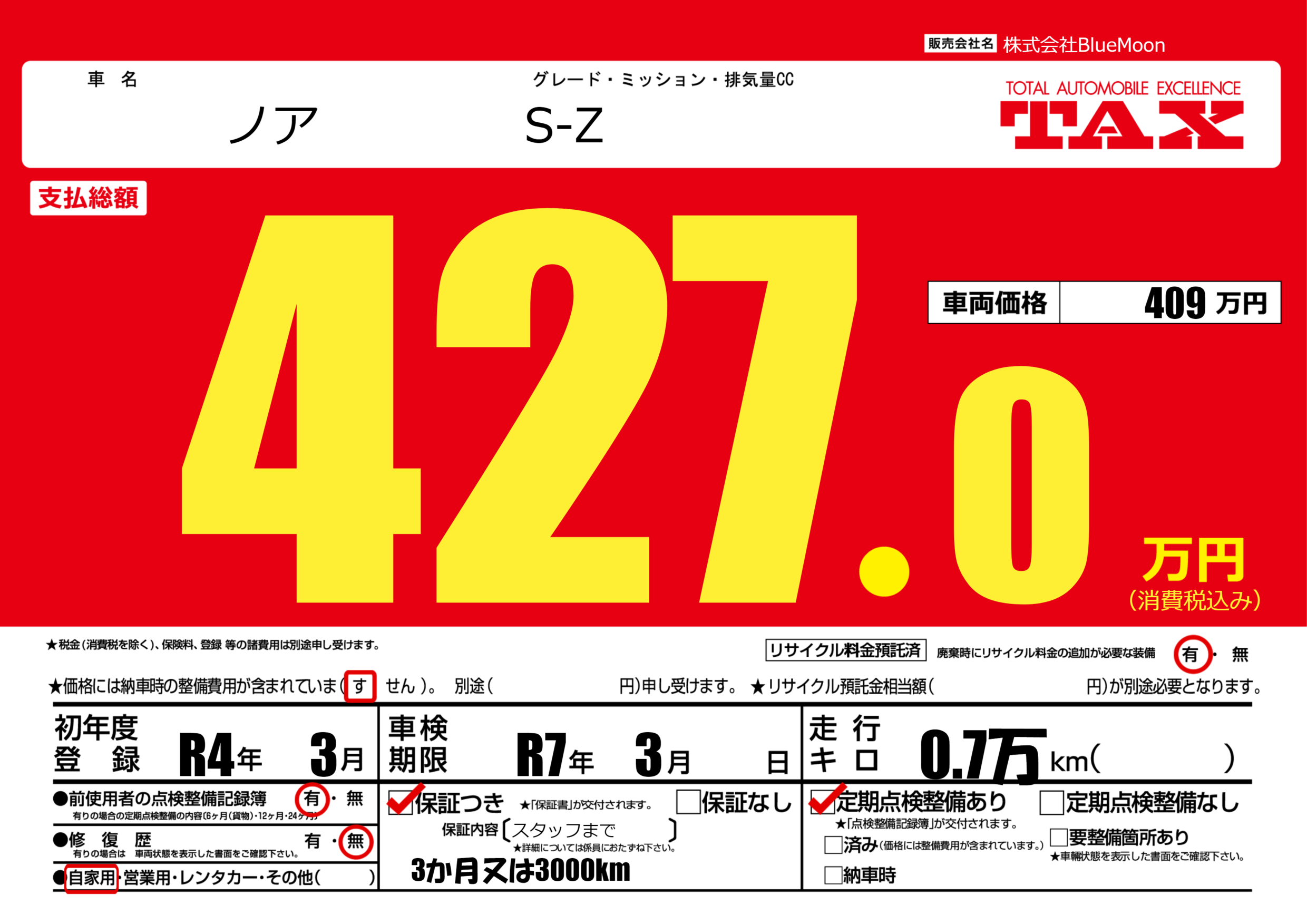 | 走行キロ | - | 初年度登録 | R4年3月 |