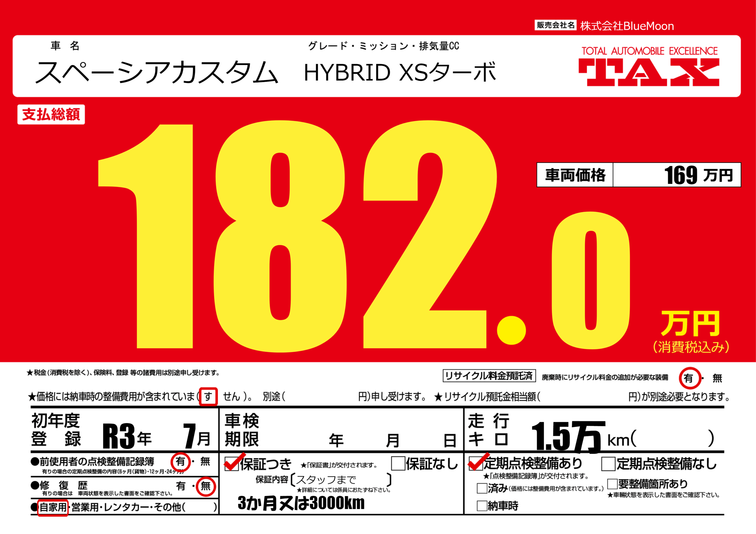 | 車名 | スペーシアカスタム | グレード ミッション 排気量 |