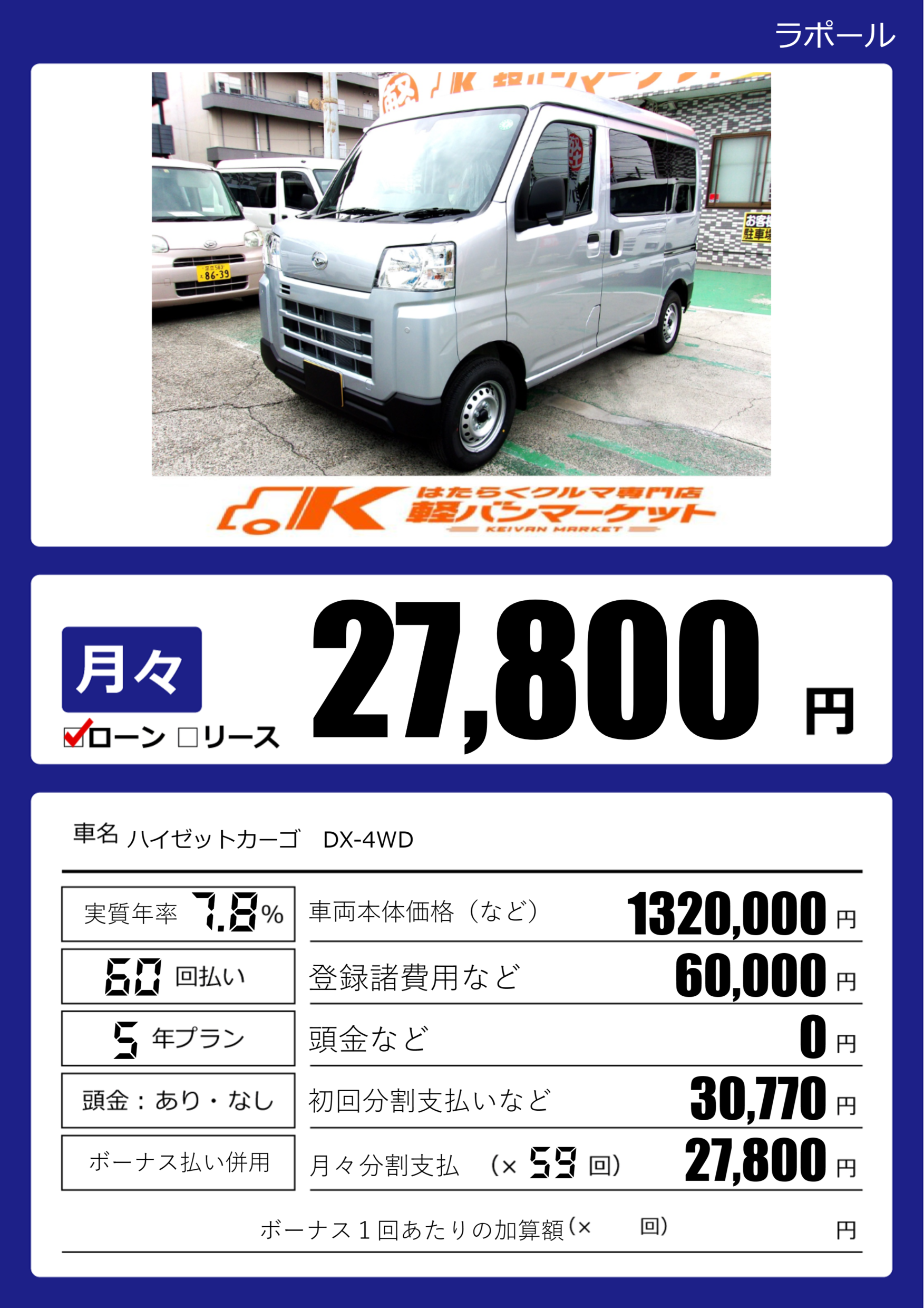 株式会社ラポール 軽バンマーケットの展示車をすべて見る