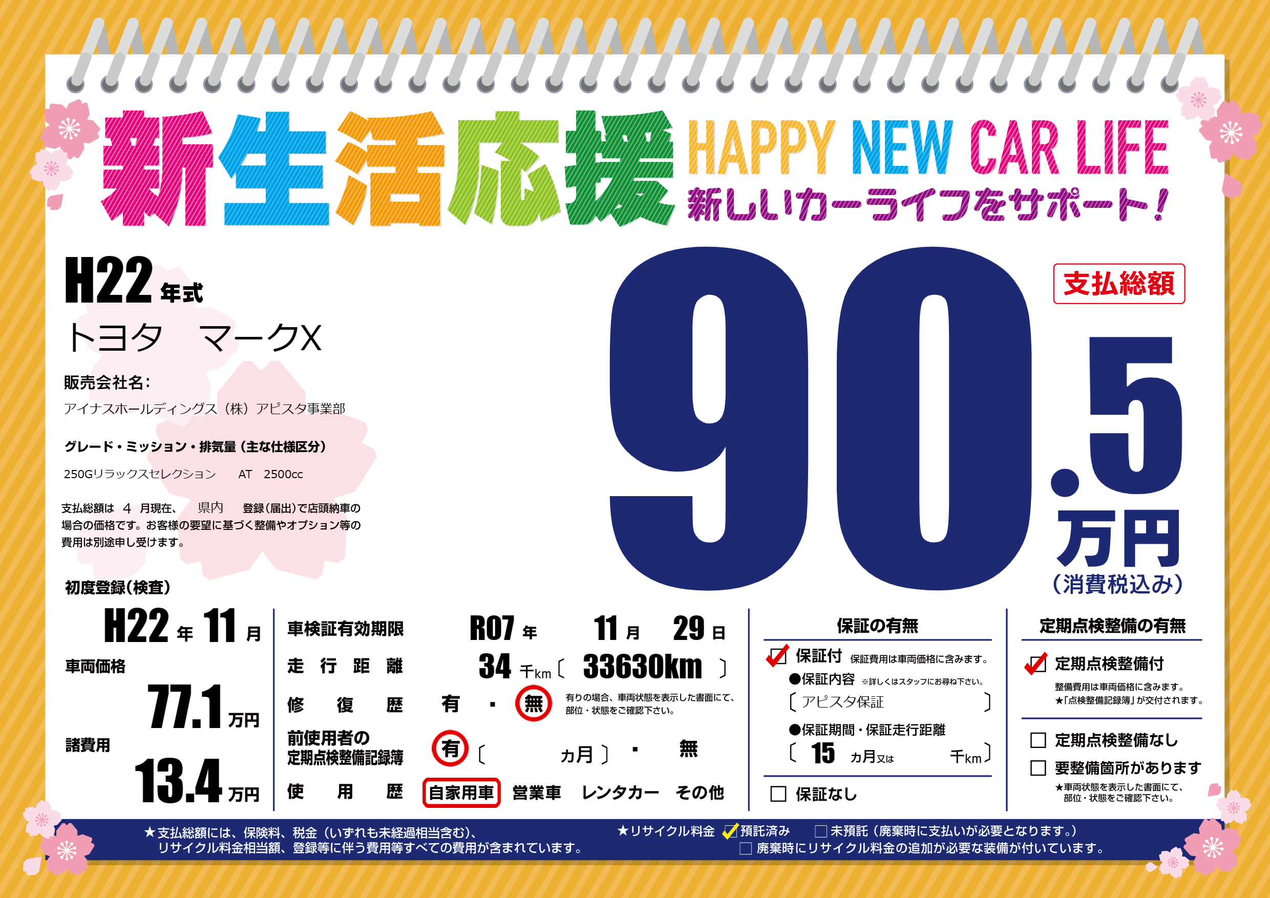 | 車名 | トヨタ マークX | グレード ミッション 排気量 |