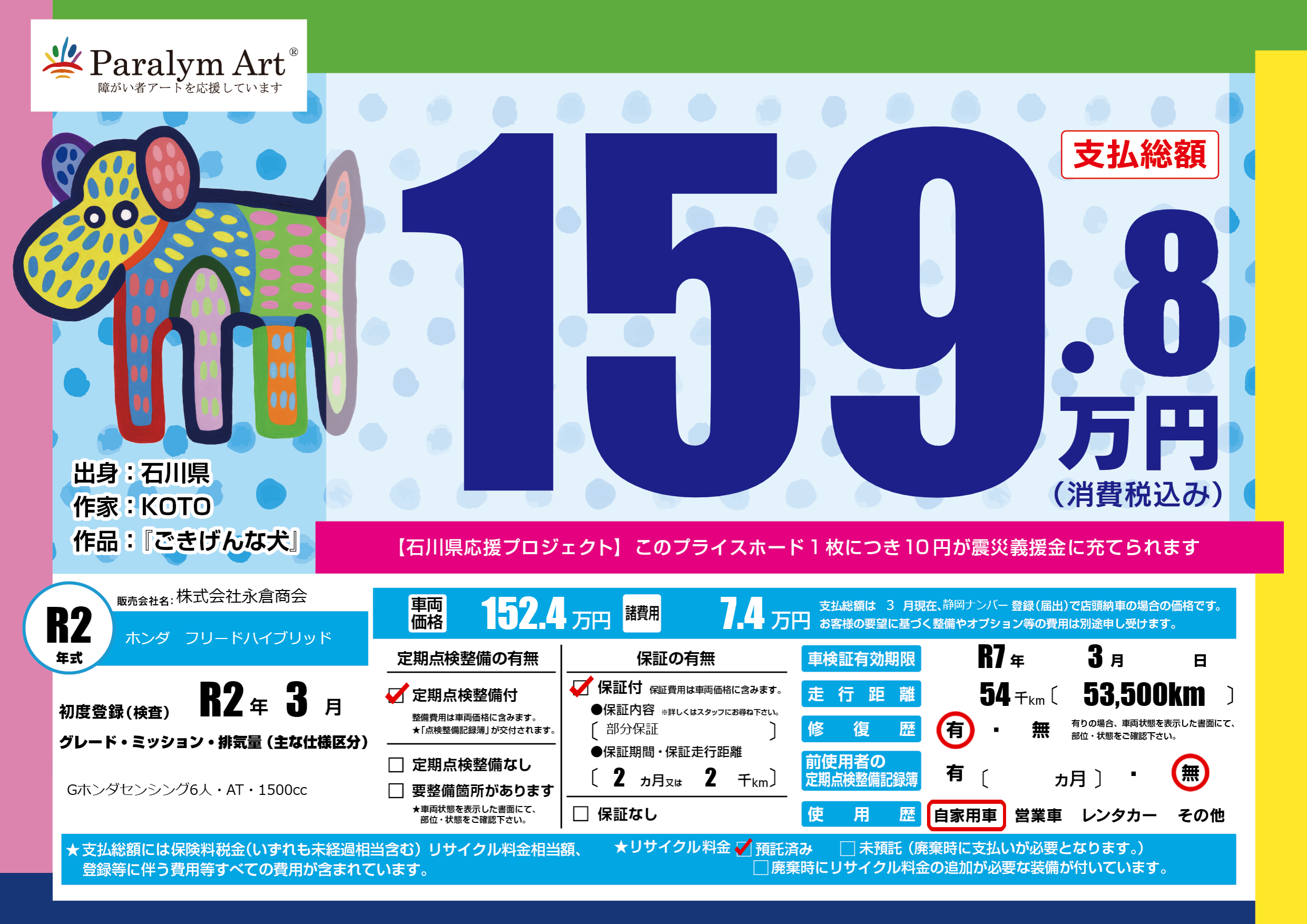 | 車名 | ホンダ フリードハイブリッド | グレード ミッション 排気量 |