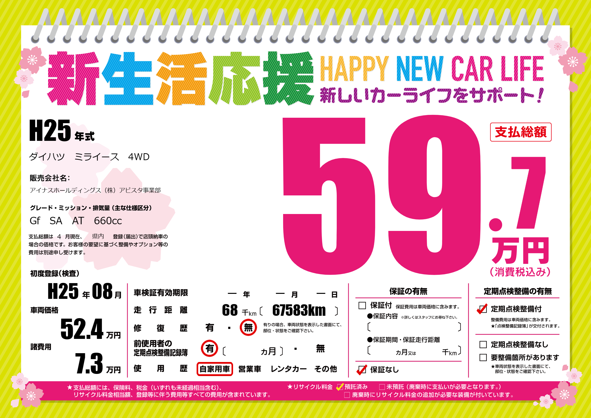 | 定期点検整備 | 定期点検整備あり | ||