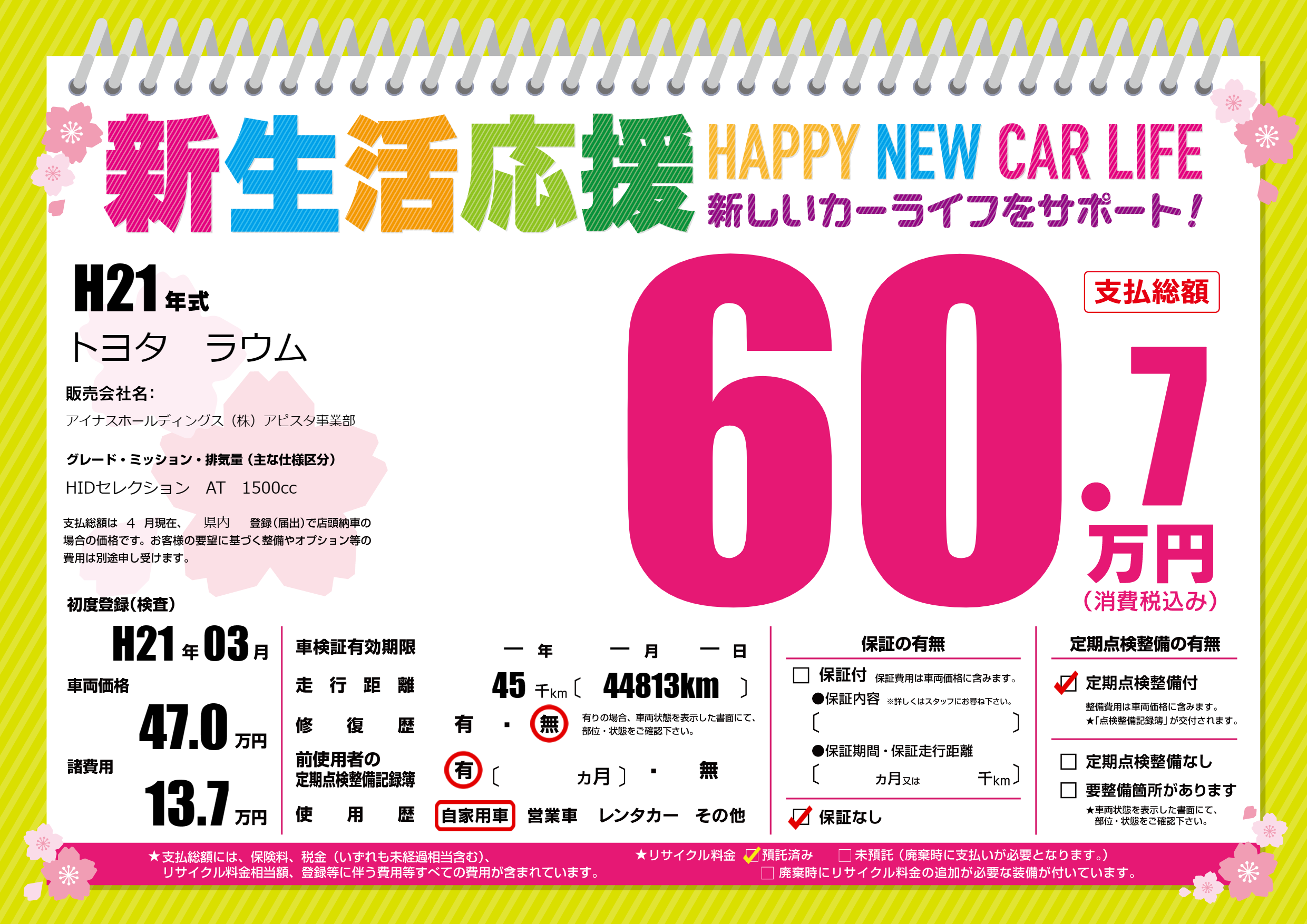 | 初年度登録 | H21年03月 | ||