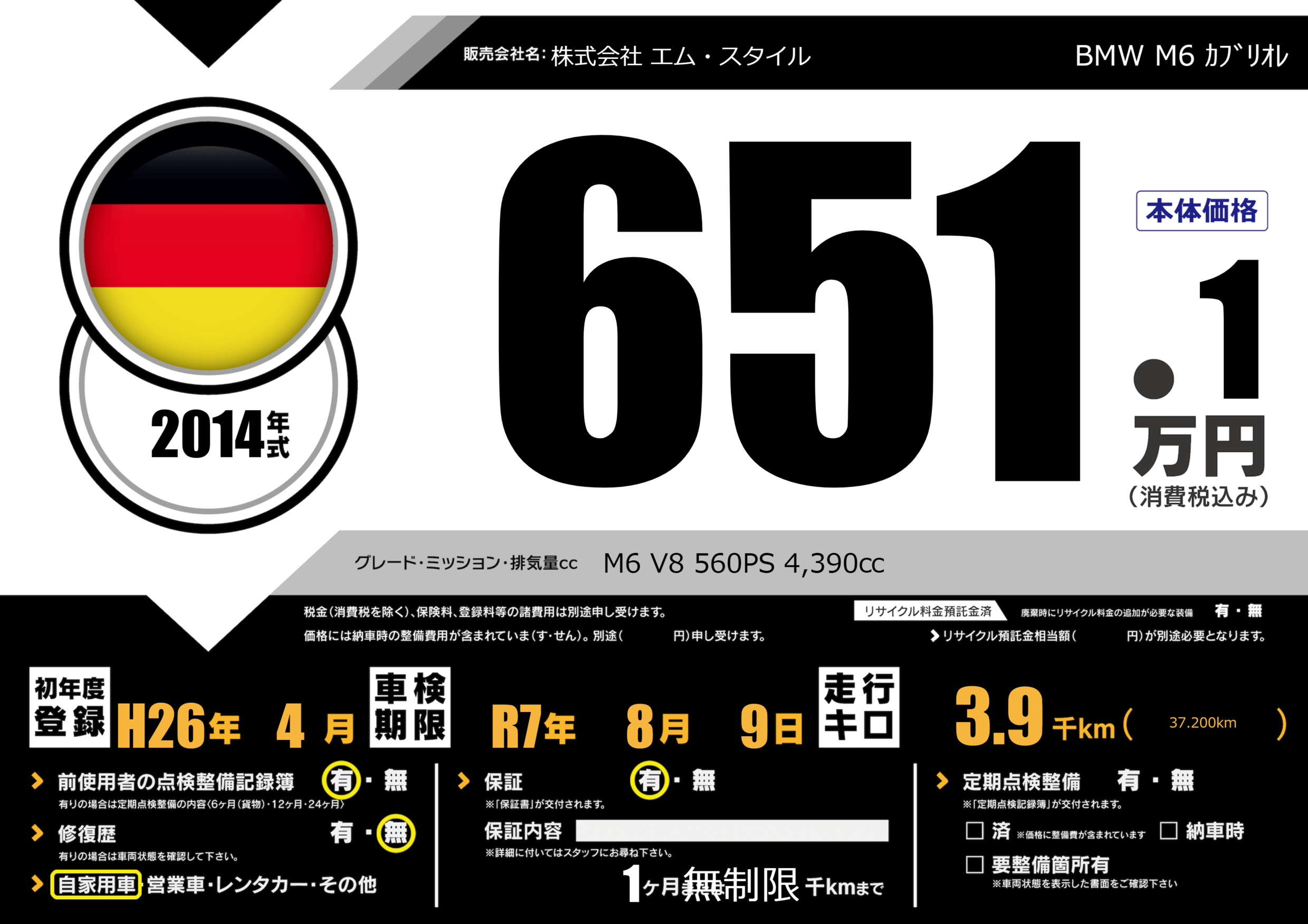 M6 V8 560PS 4,390㏄ |