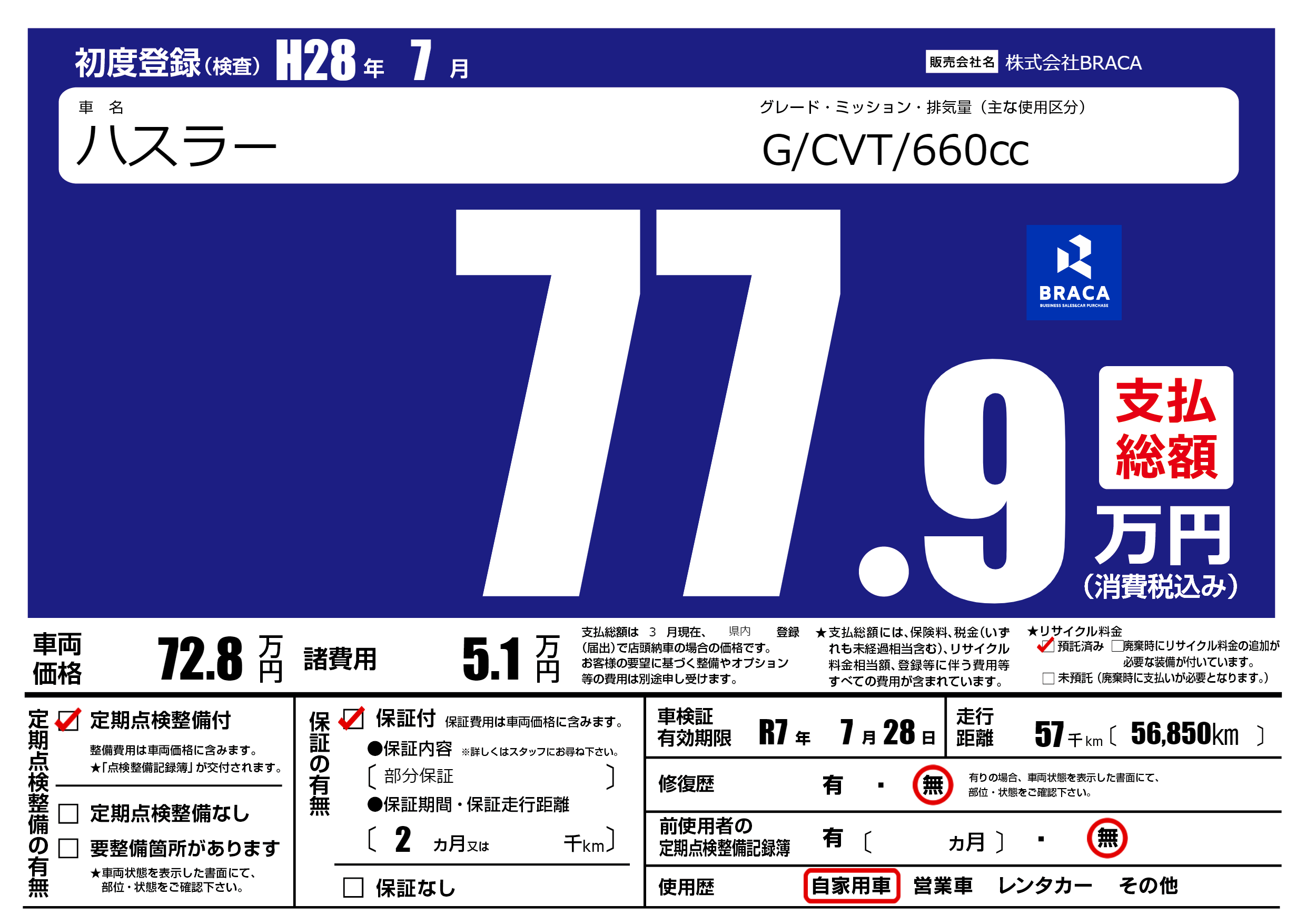 | 車検制限 | R7年 7月 28日 | ||