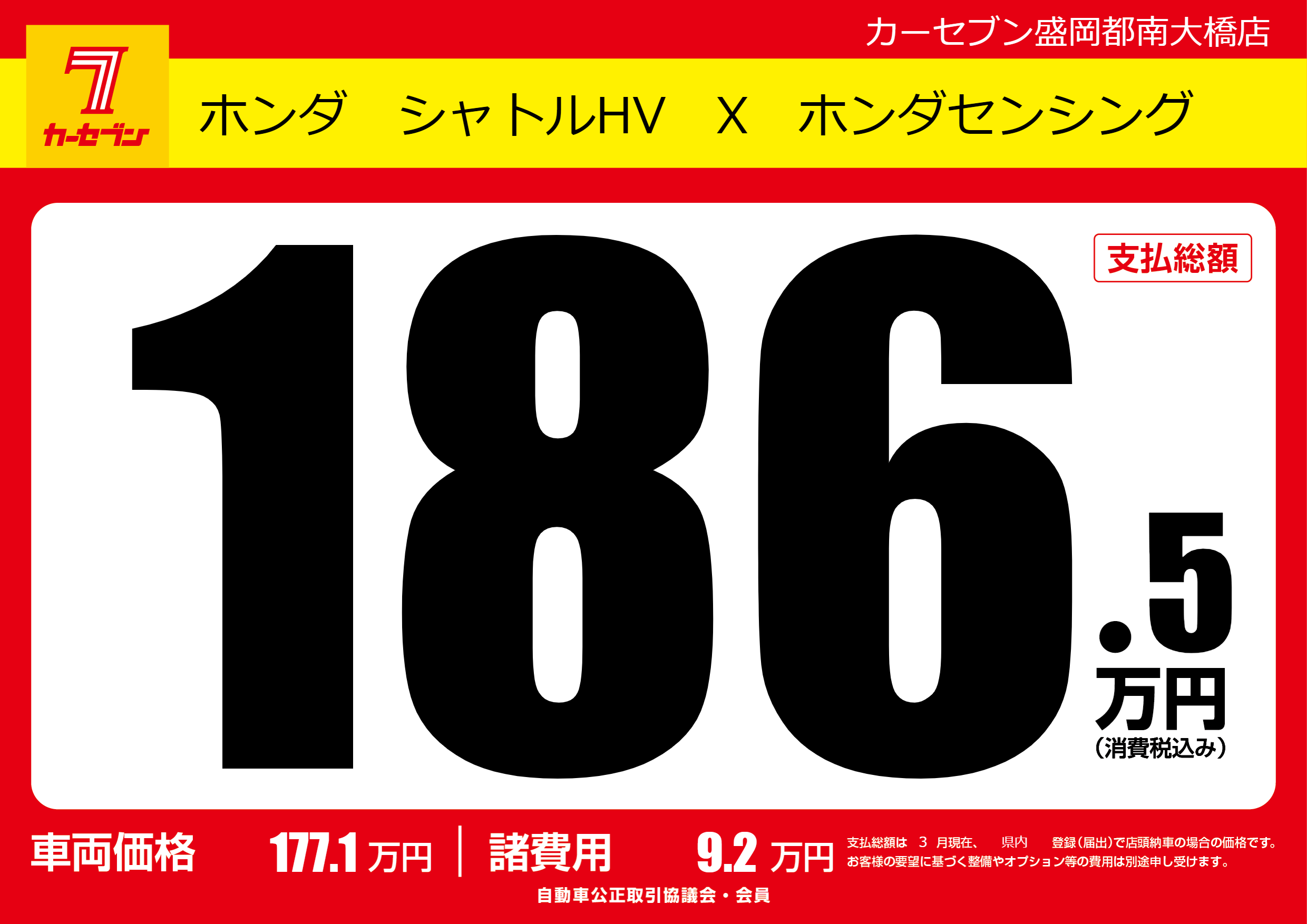 | 車名 | ホンダ シャトルHV X ホンダセンシング | グレード ミッション 排気量 |