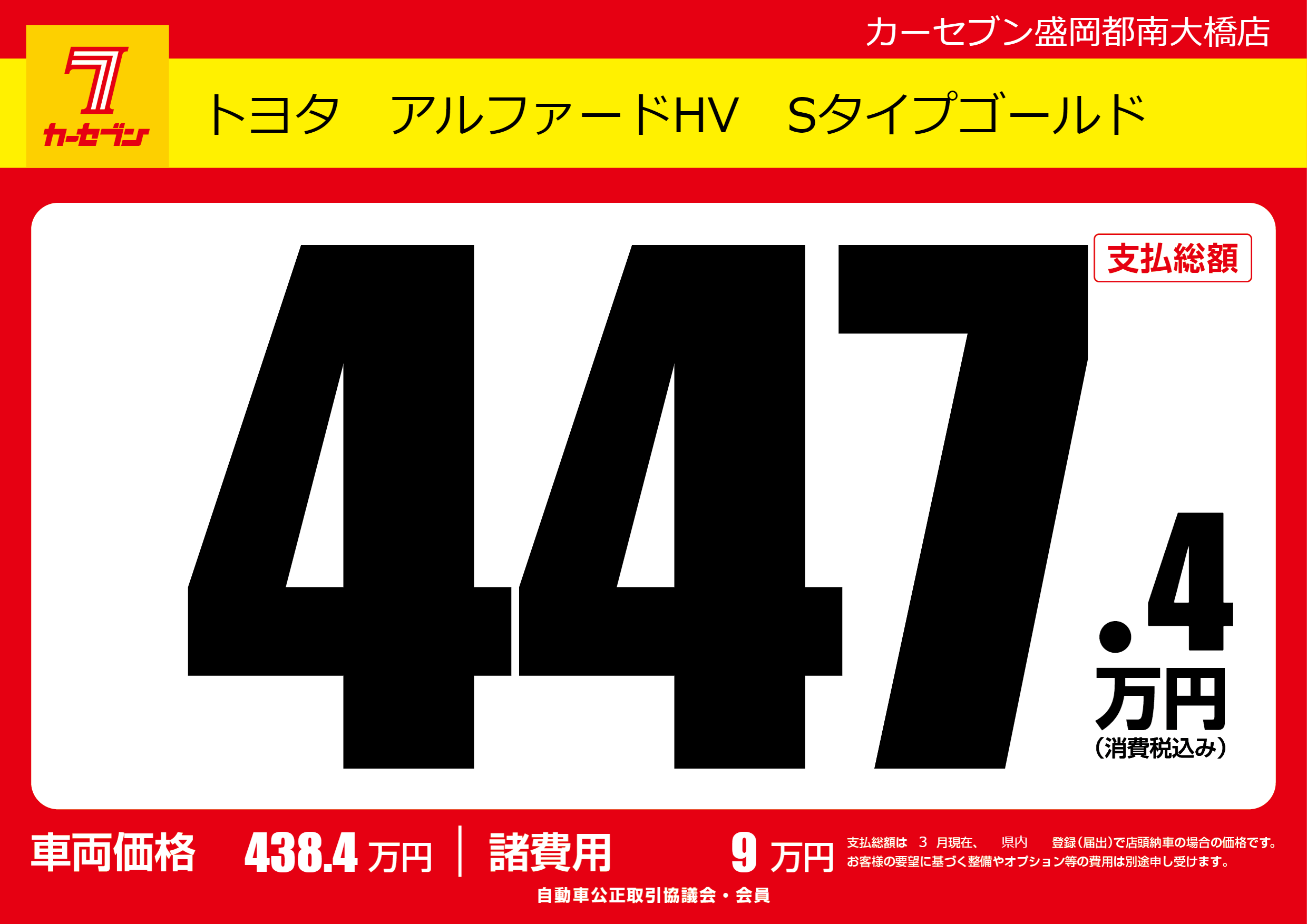 | 車名 | トヨタ アルファードHV Sタイプゴールド | グレード ミッション 排気量 |