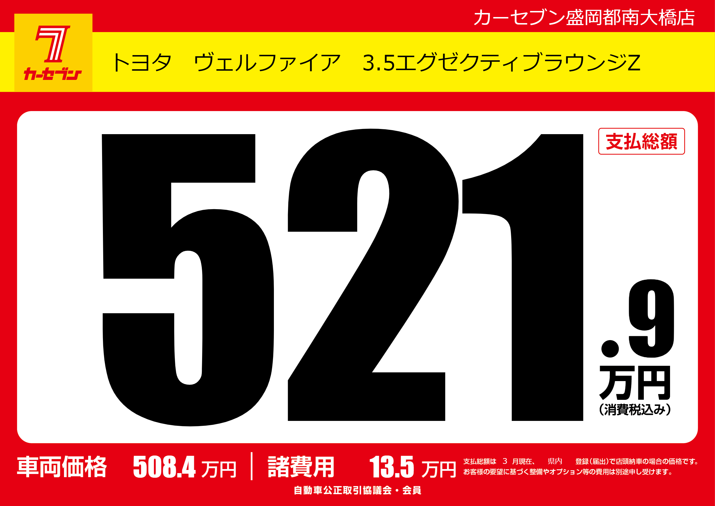 | 車名 | トヨタ ヴェルファイア 3.5エグゼクティブラウンジZ | グレード ミッション 排気量 |