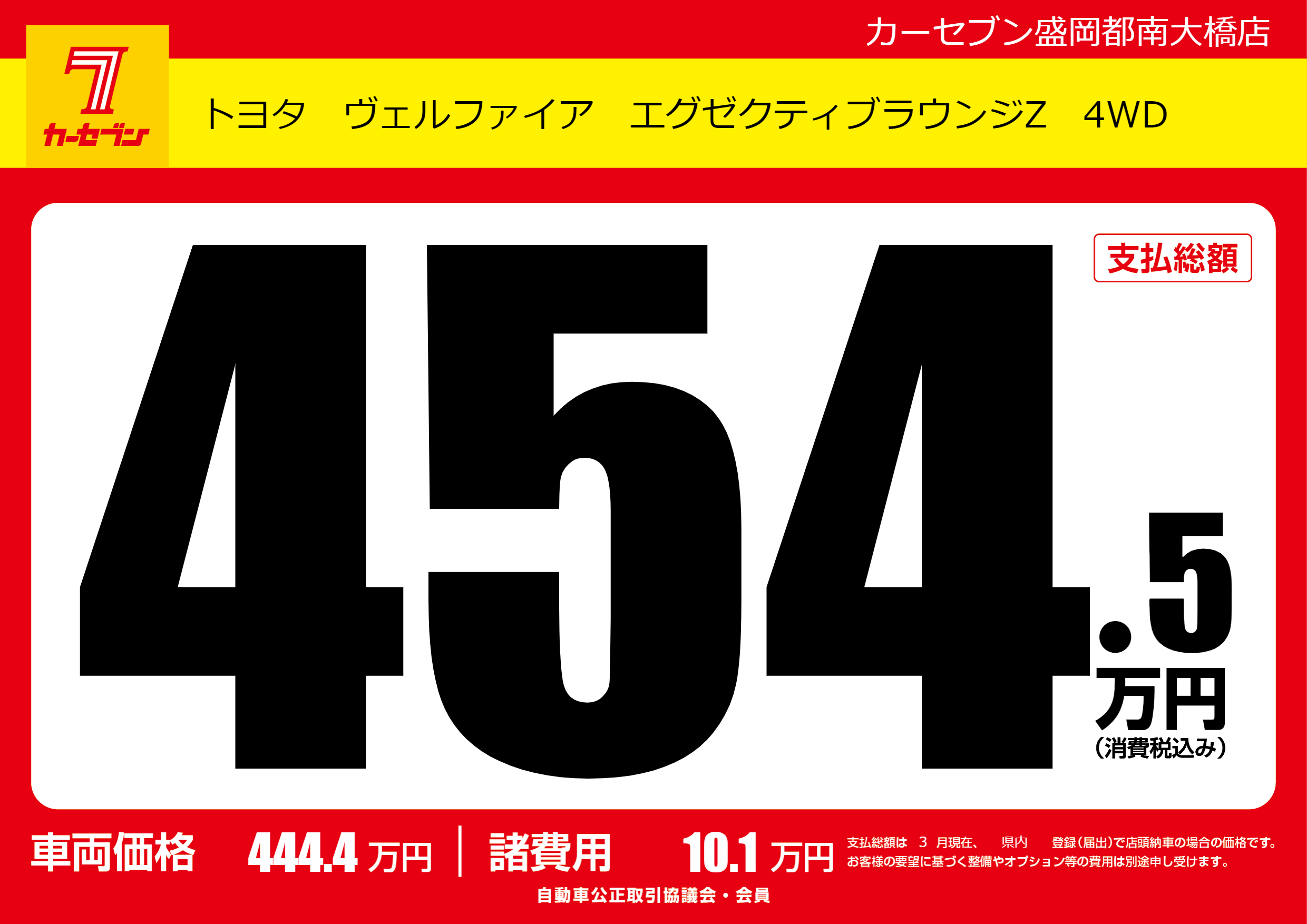 | 車名 | トヨタ ヴェルファイア エグゼクティブラウンジZ 4WD | グレード ミッション 排気量 |