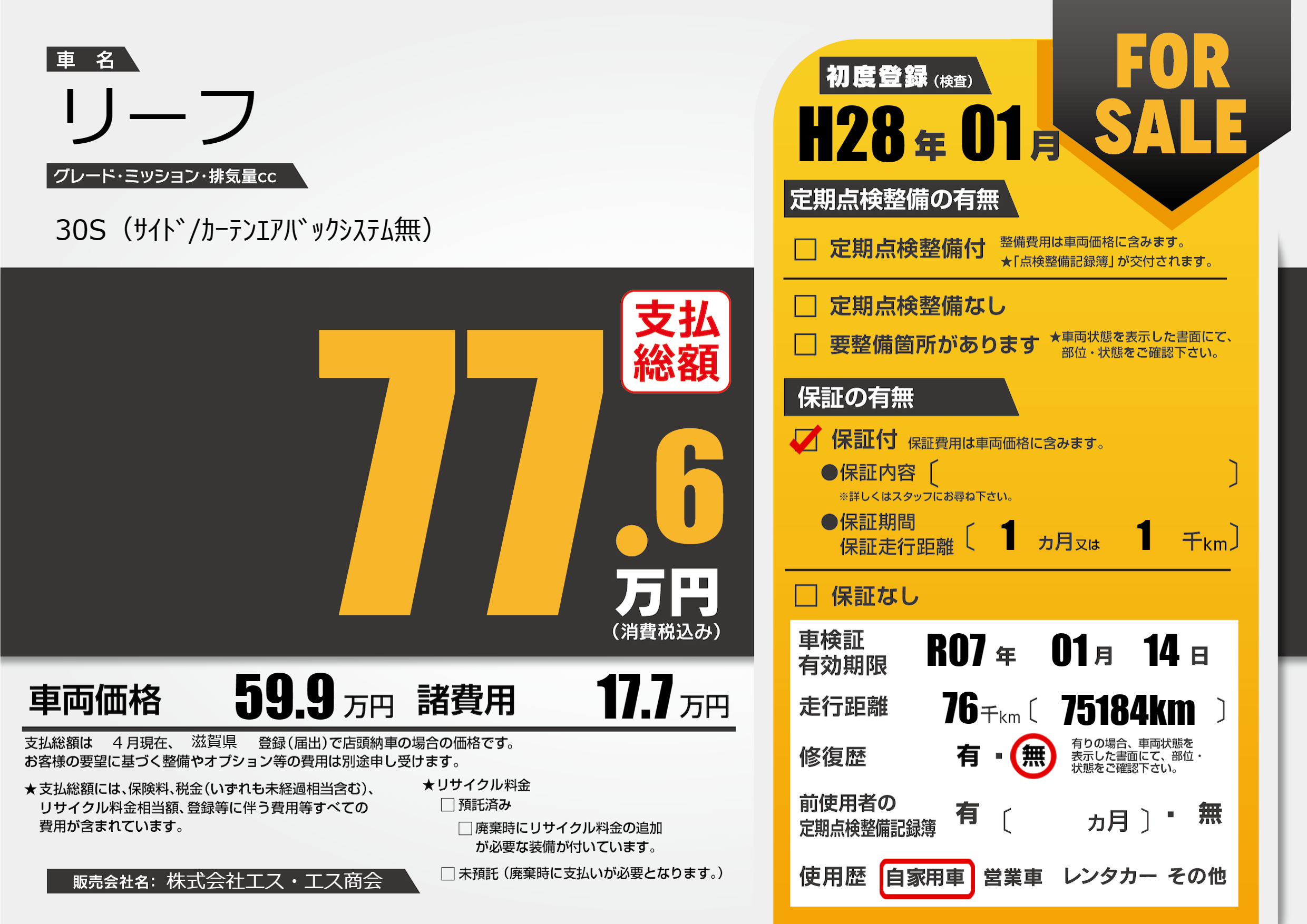 | 車検制限 | R07年 01月 14日 | ||