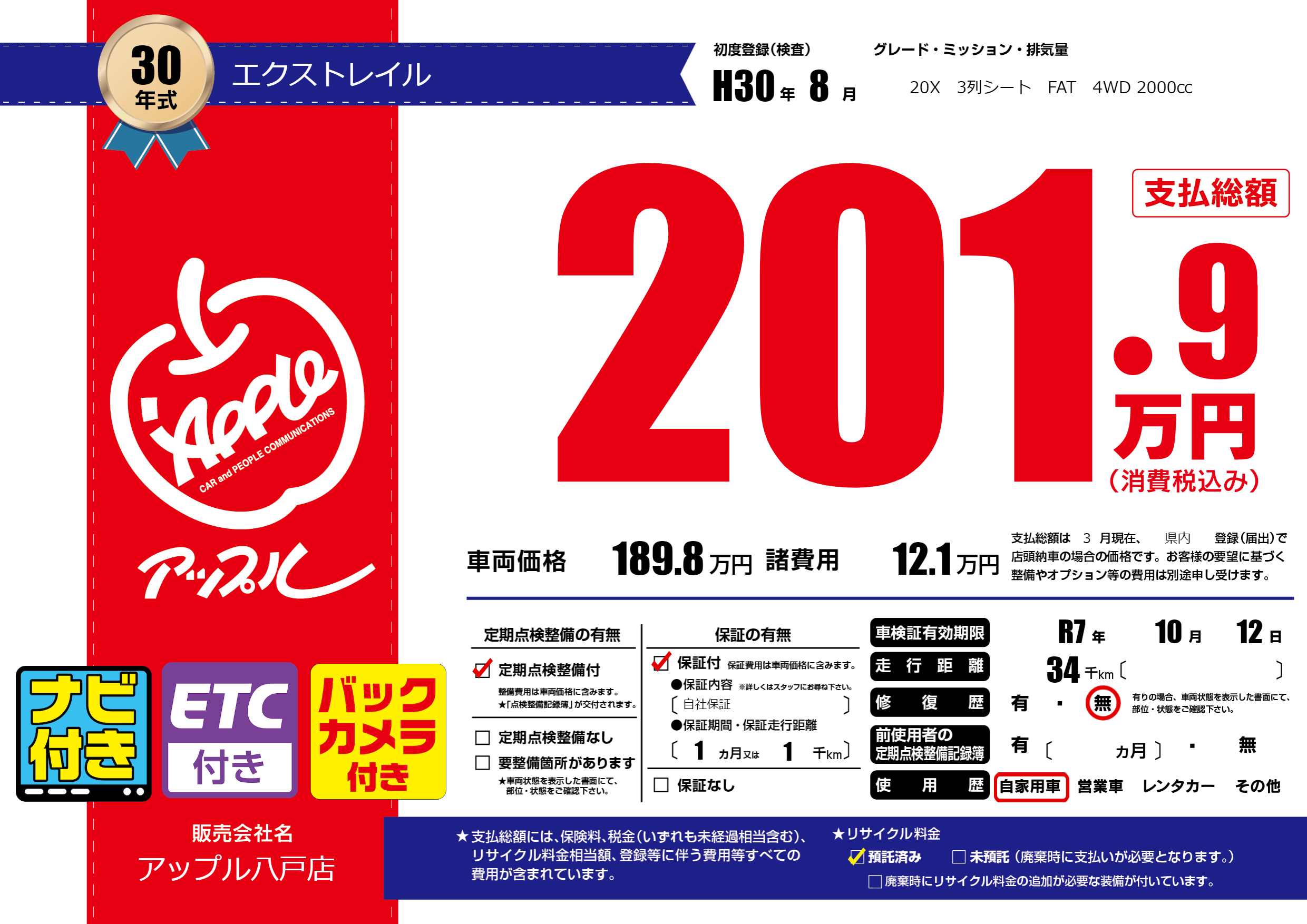 なし | 車検制限 | R7年10月12月 |