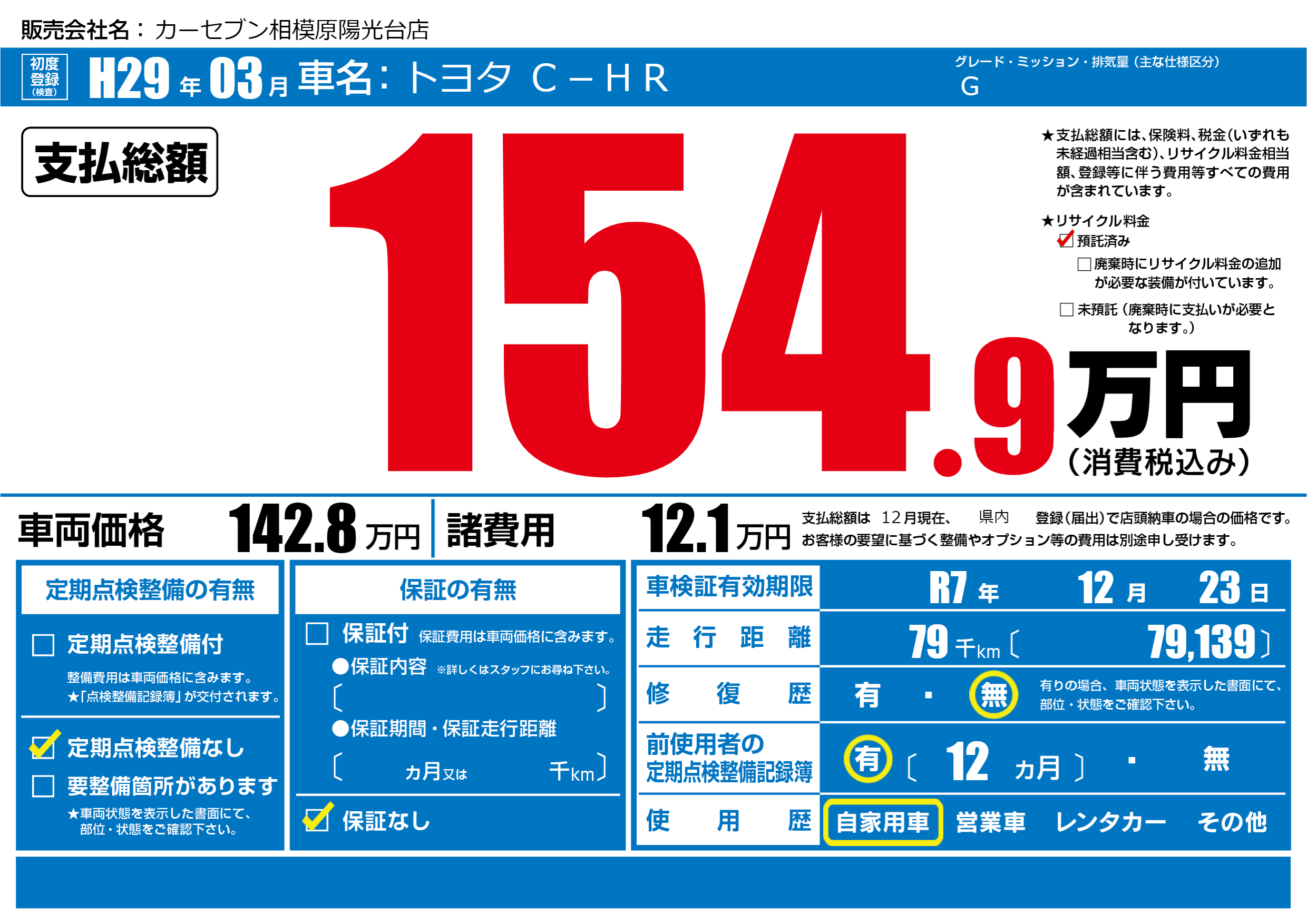 なし | 車検制限 | R7年12月23月 |