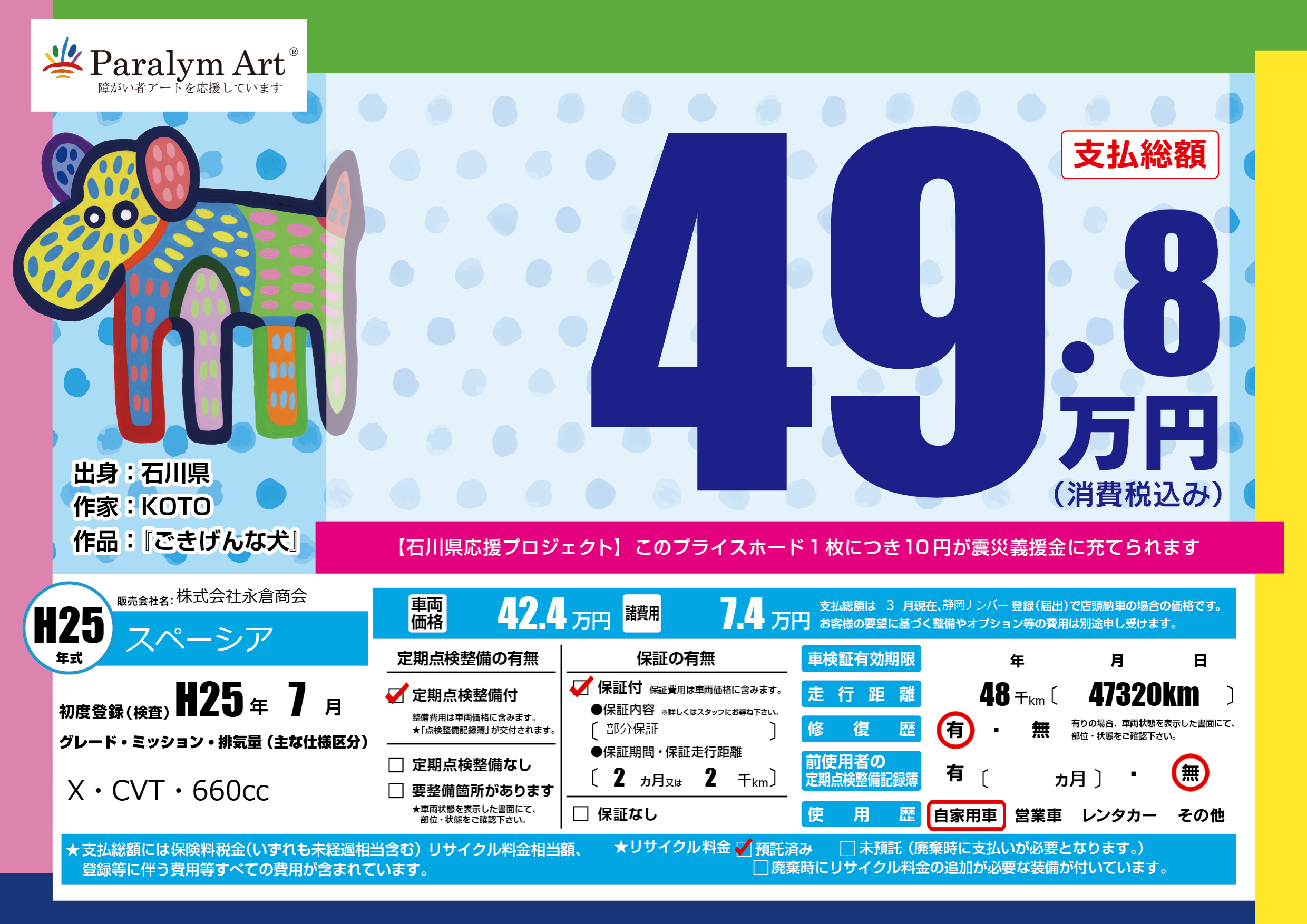 | 走行キロ | 4.8万km | 初年度登録 | H25年7月 |