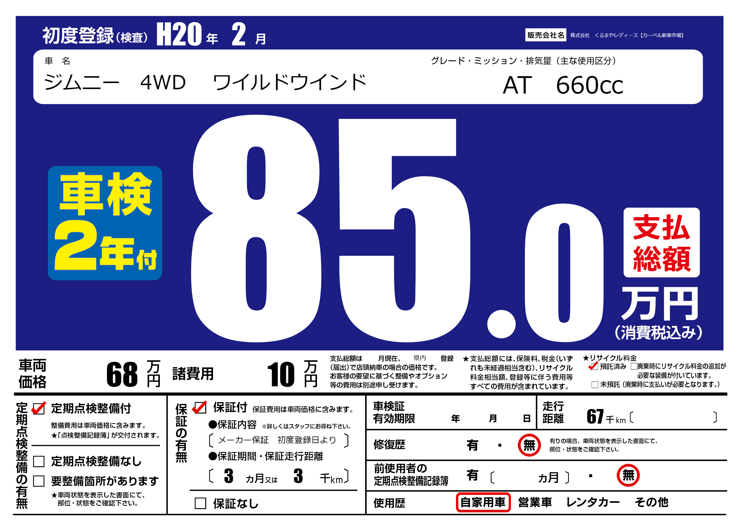 初年度登録 H20年2月