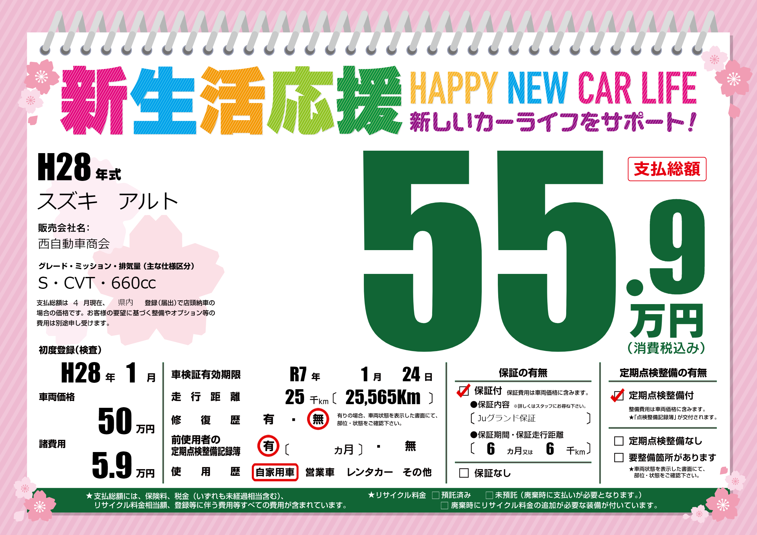 | 車名 | スズキ アルト | グレード ミッション 排気量 |