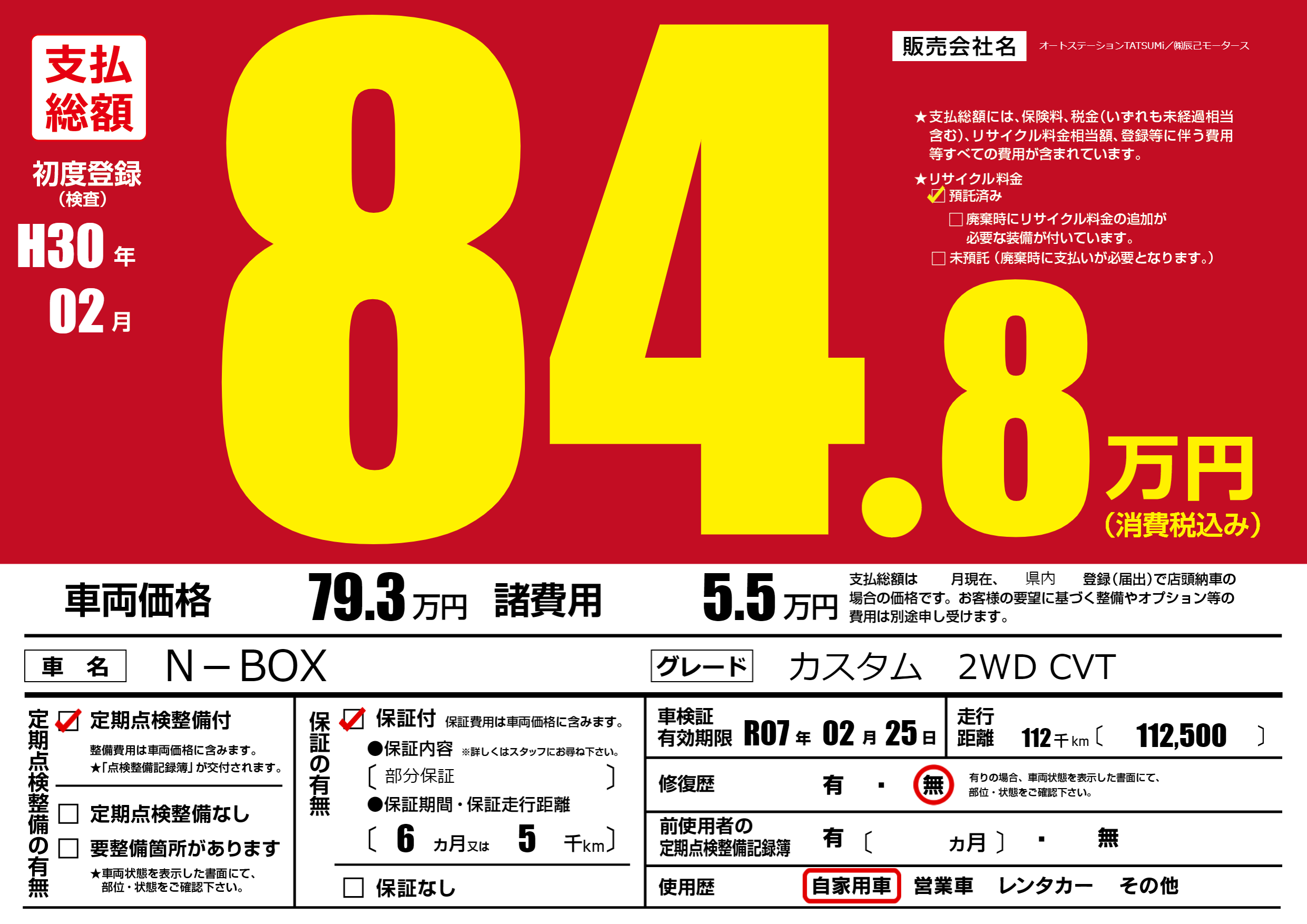 | 走行キロ | 11.2万km | 初年度登録 | H30年02月 |
