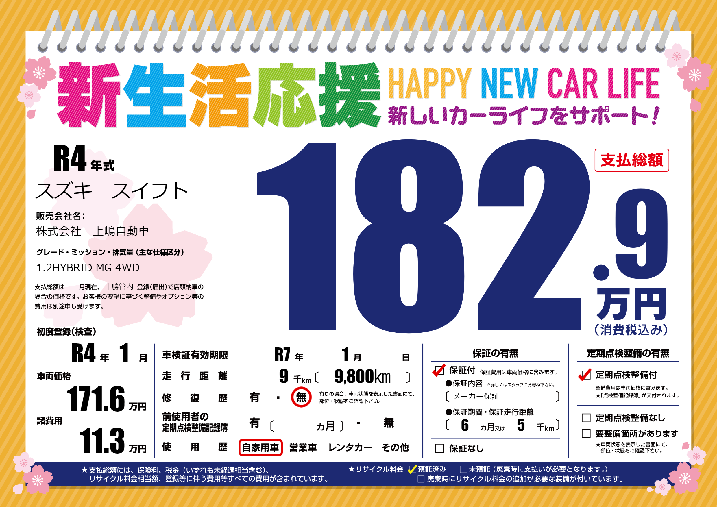 | 車名 | スズキ スイフト | グレード ミッション 排気量 |