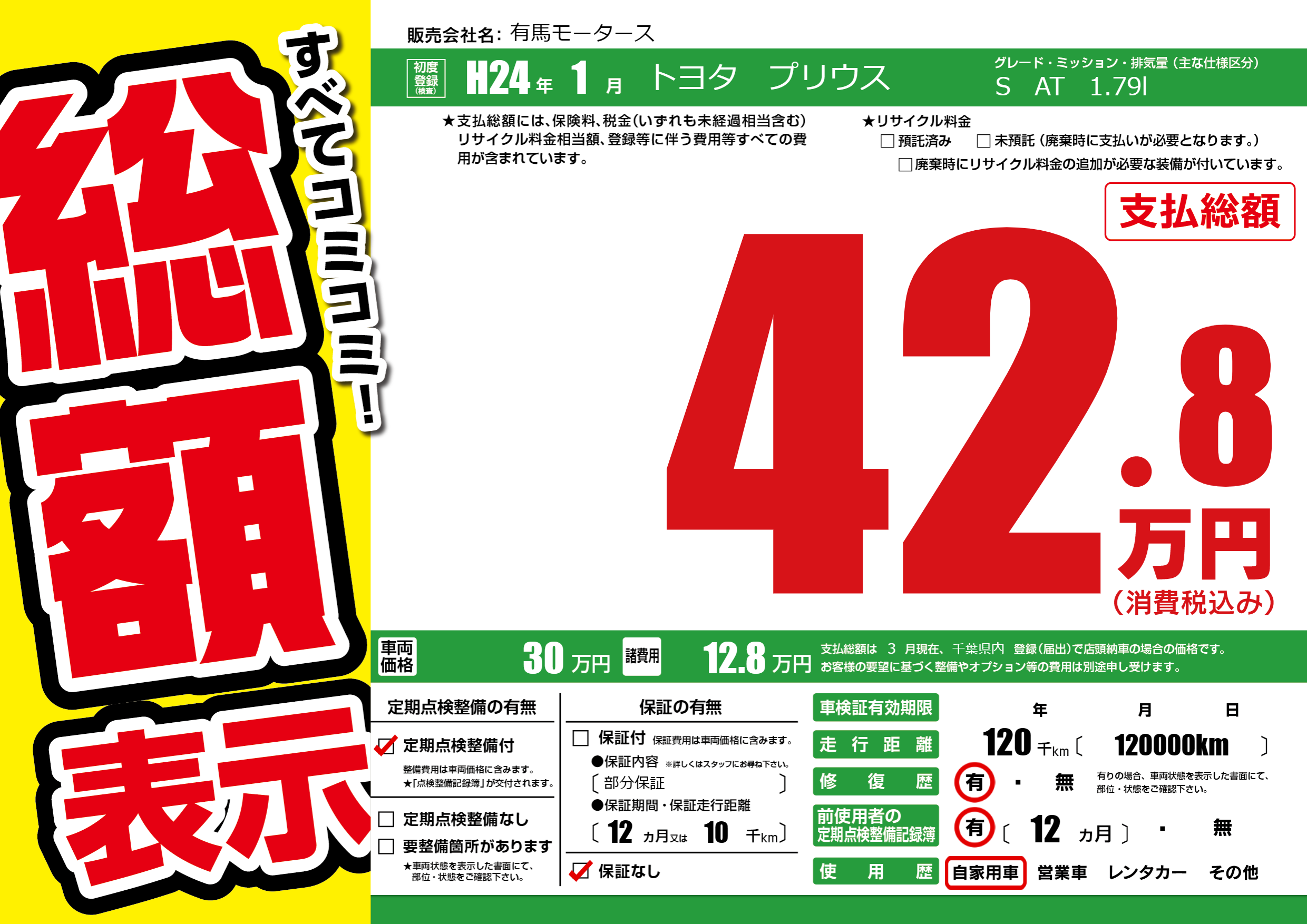 | 車名 | トヨタ プリウス | グレード ミッション 排気量 |