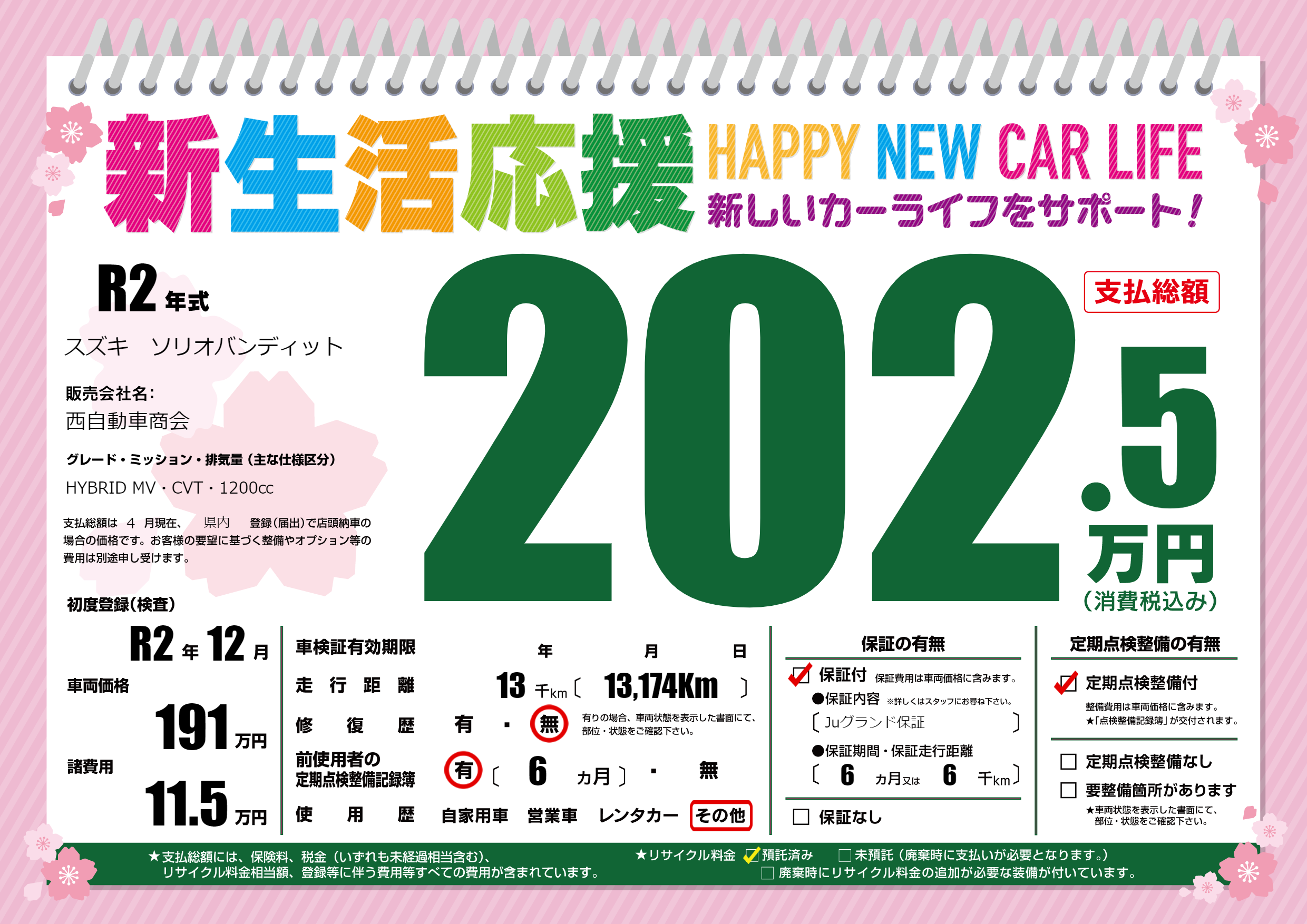 | 定期点検整備 | 定期点検整備あり | ||