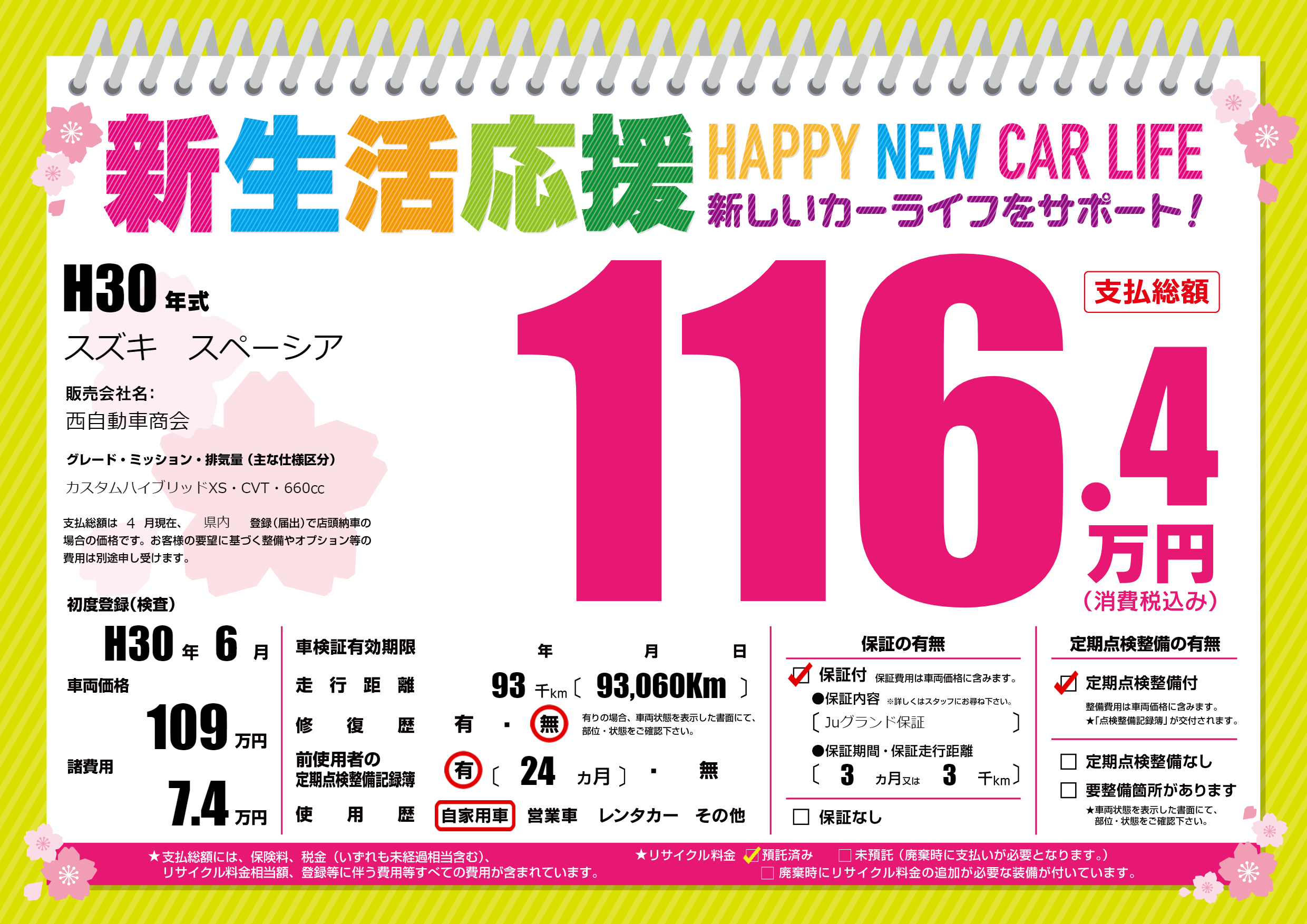 | 走行キロ | 9.3万km | 初年度登録 | H30年6月 |