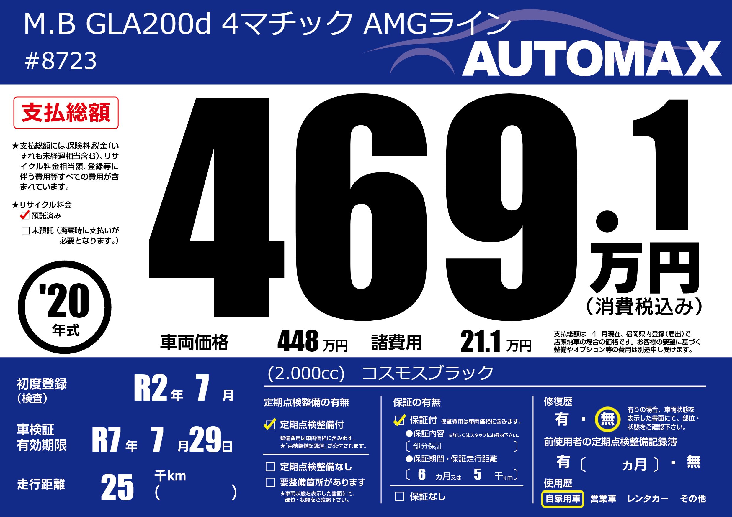 | 車名 | M.B GLA200d 4マチック AMGライン | グレード ミッション 排気量 |