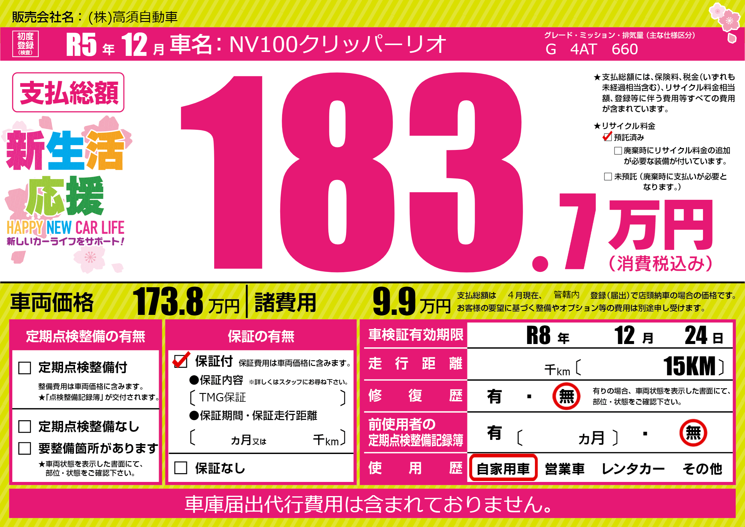 保証付き 保証内容(TMG保証) ---ヶ月または()千kmまで |