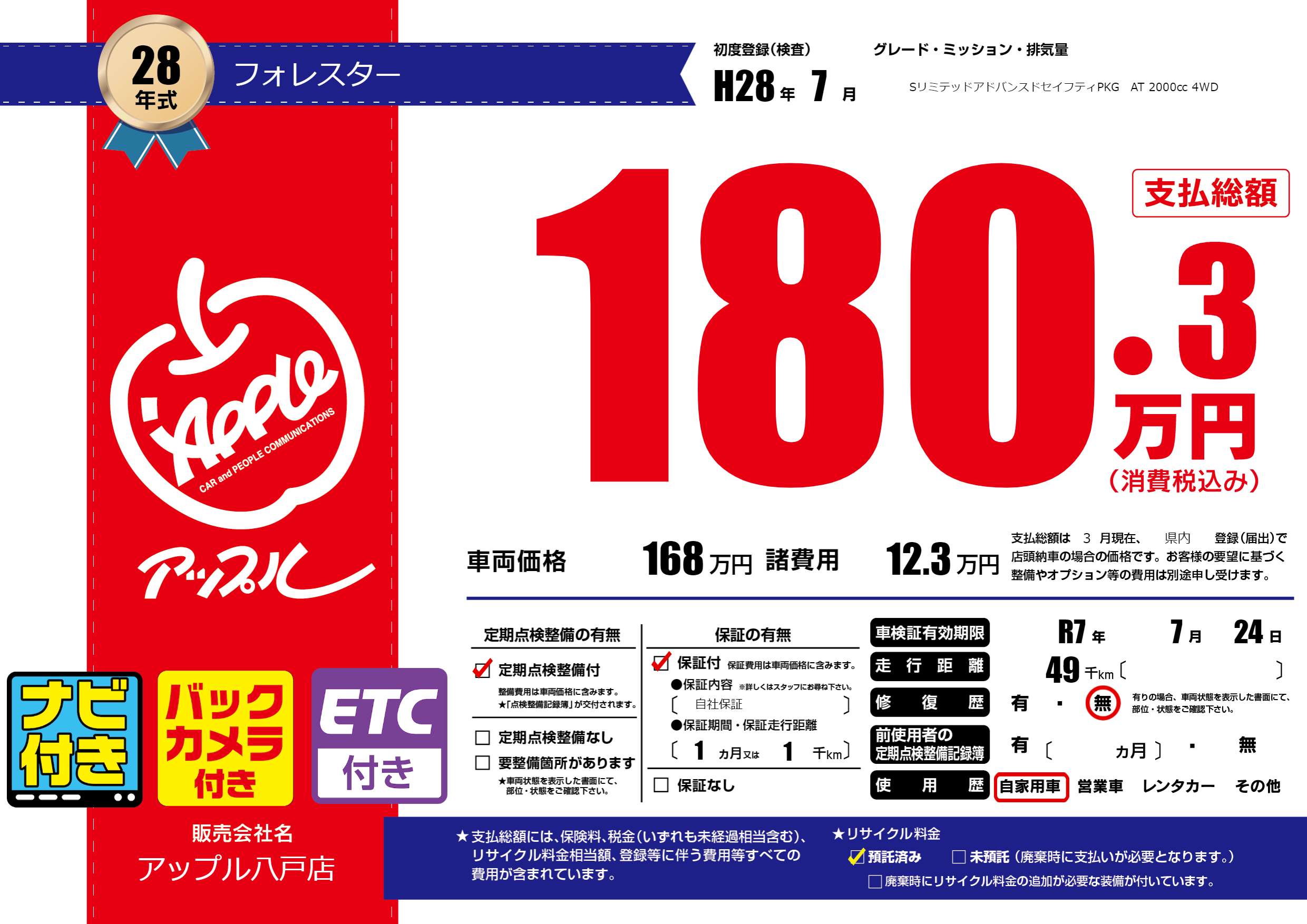 なし | 車検制限 | R7年7月24月 |