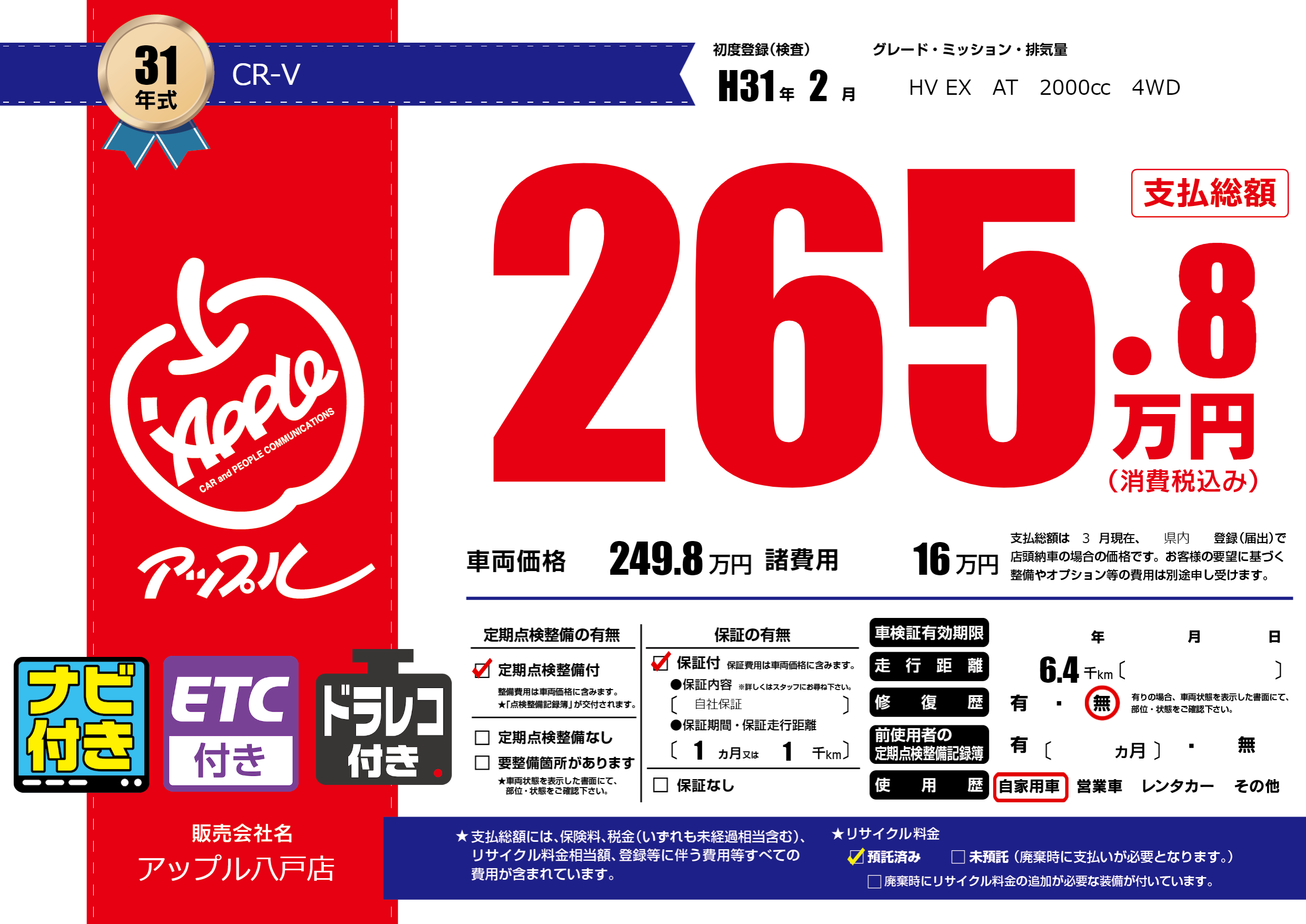 | 車名 | CR-V | グレード ミッション 排気量 |