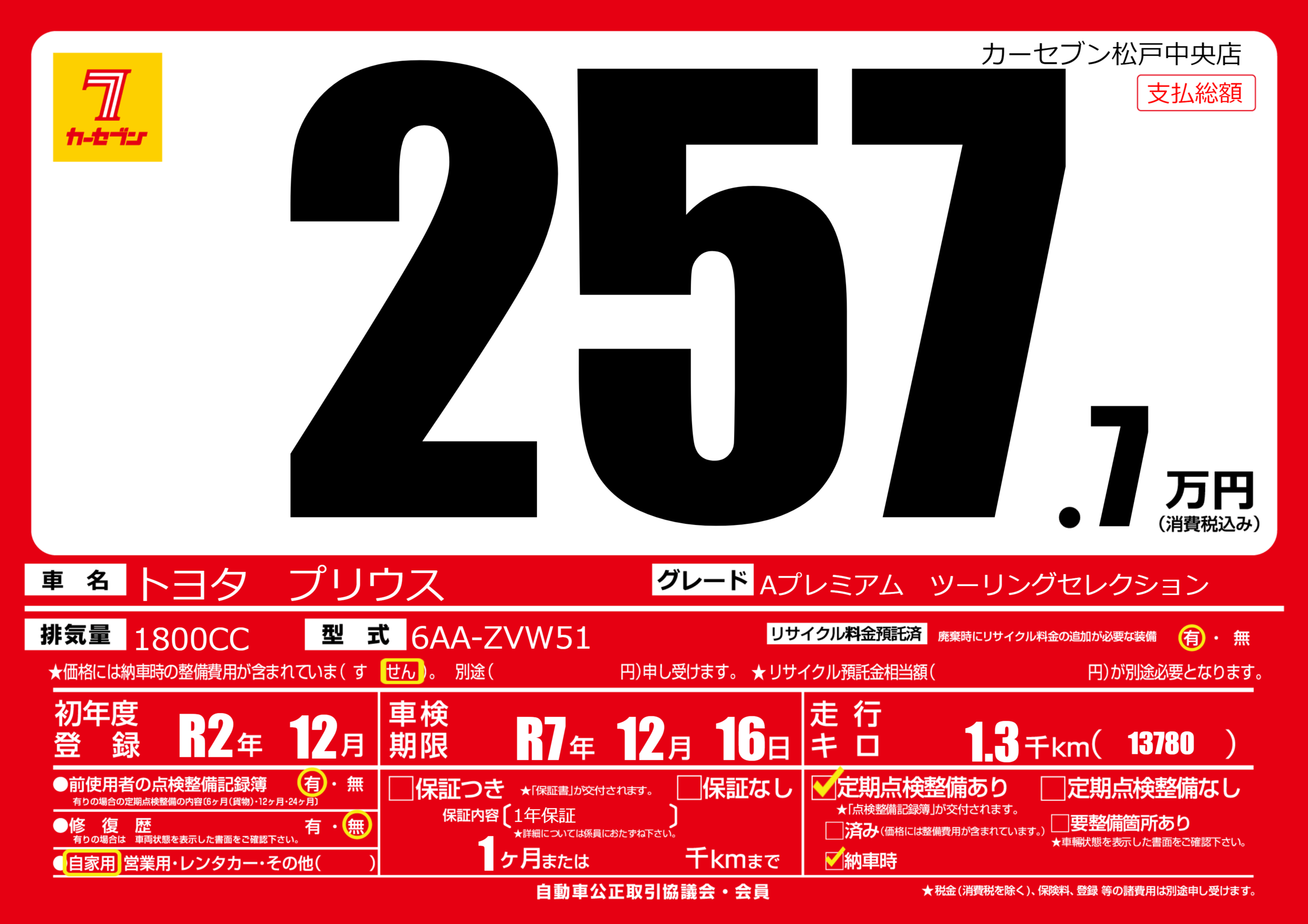 | 車検制限 | R7年 12月 16日 | ||