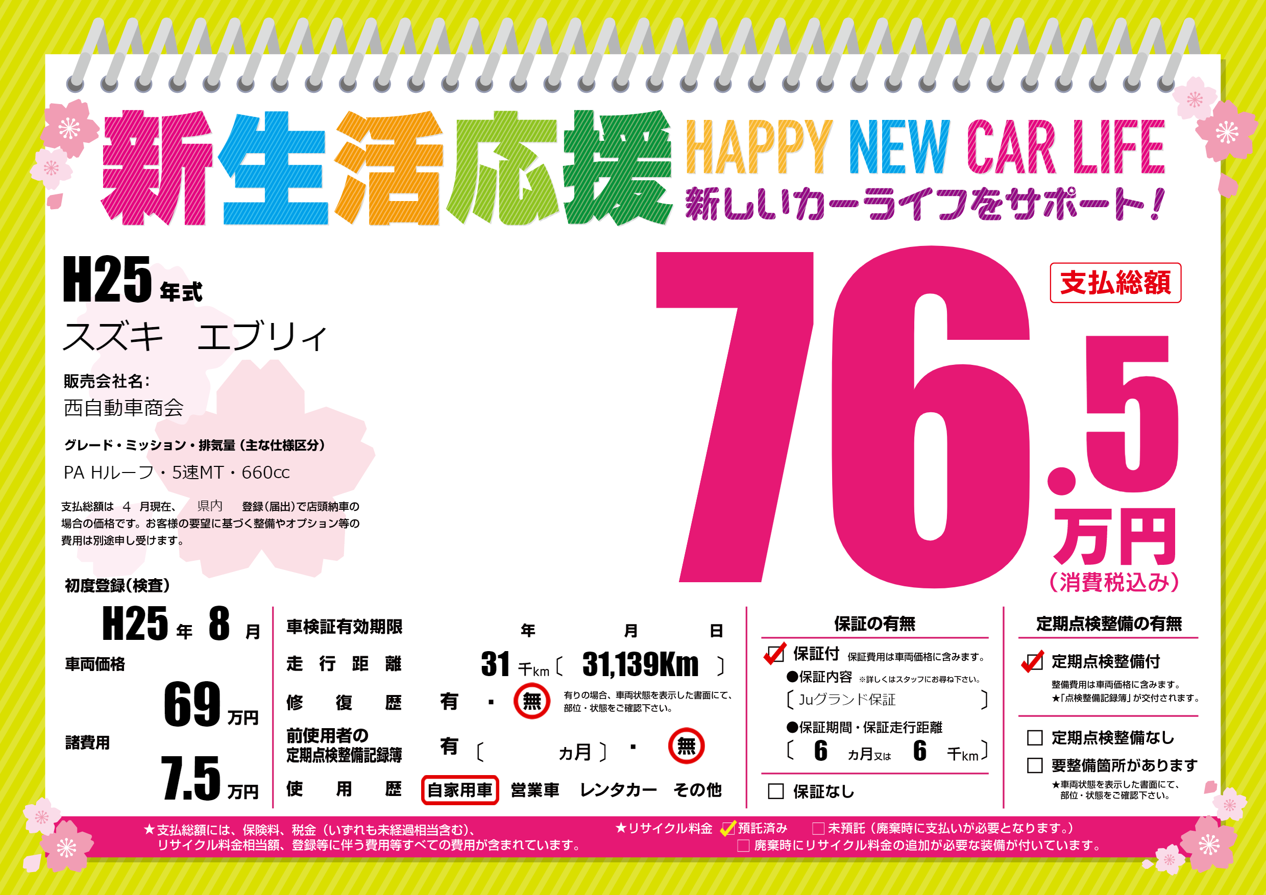 | 車名 | スズキ エブリィ | グレード ミッション 排気量 |