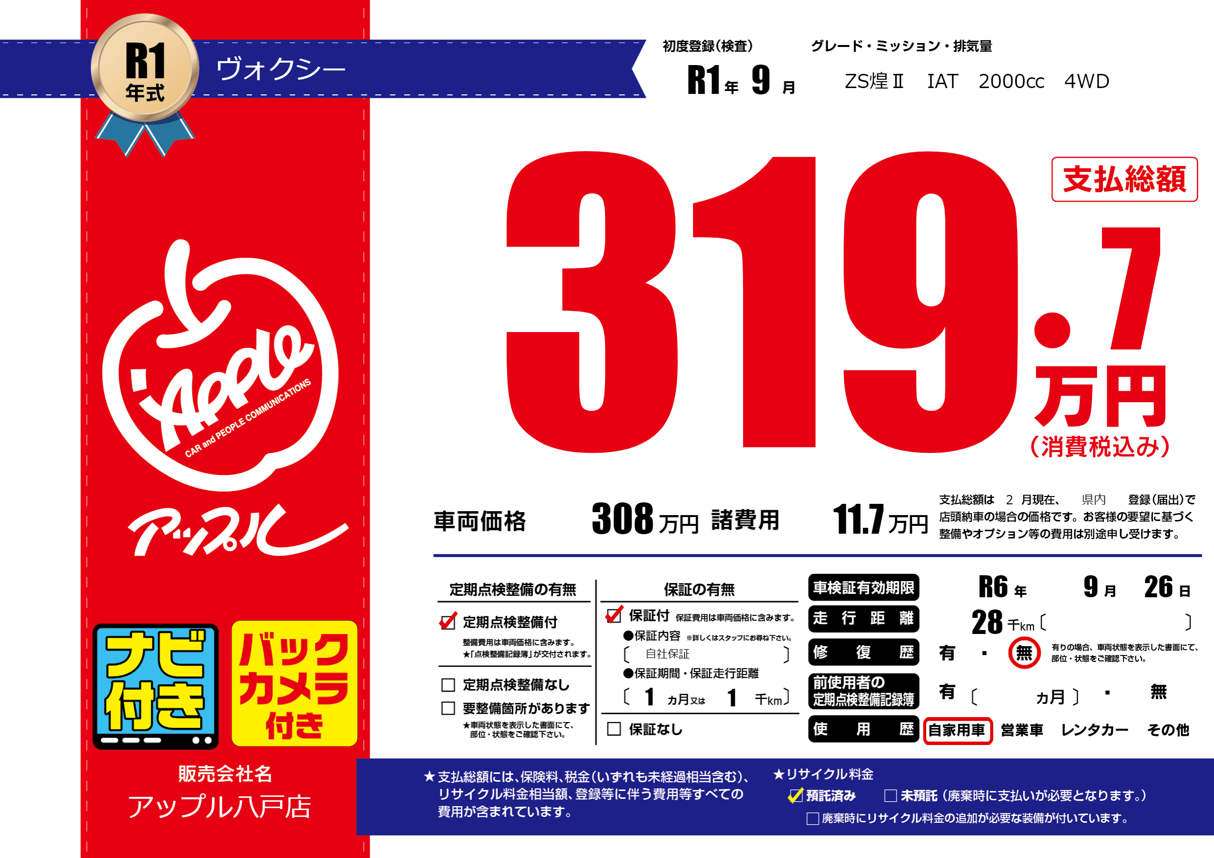 | 車検制限 | R6年 9月 26日 | ||