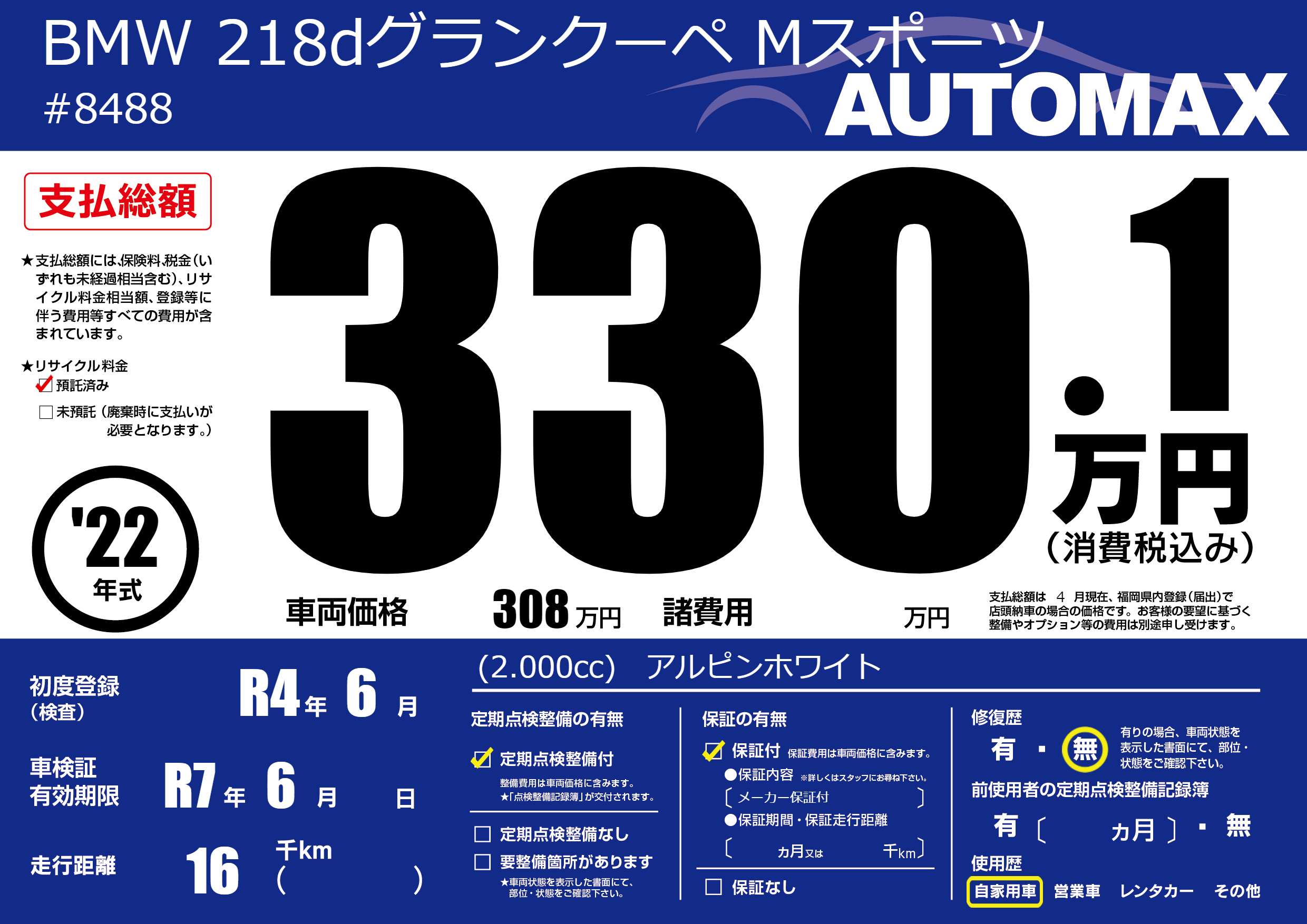 | 車検制限 | R7年 6月 - 日 | ||