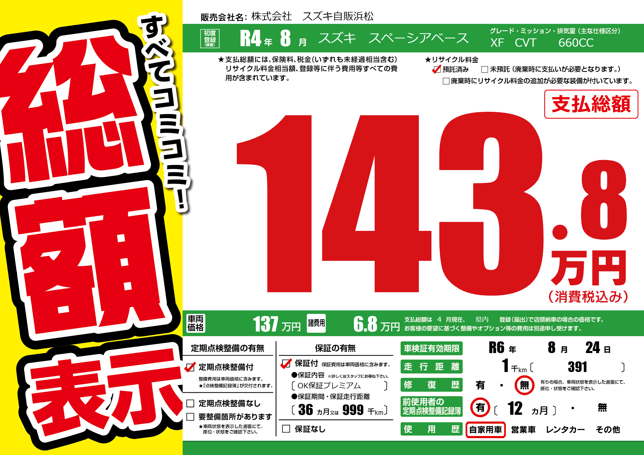 なし | 車検制限 | R6年8月24月 |