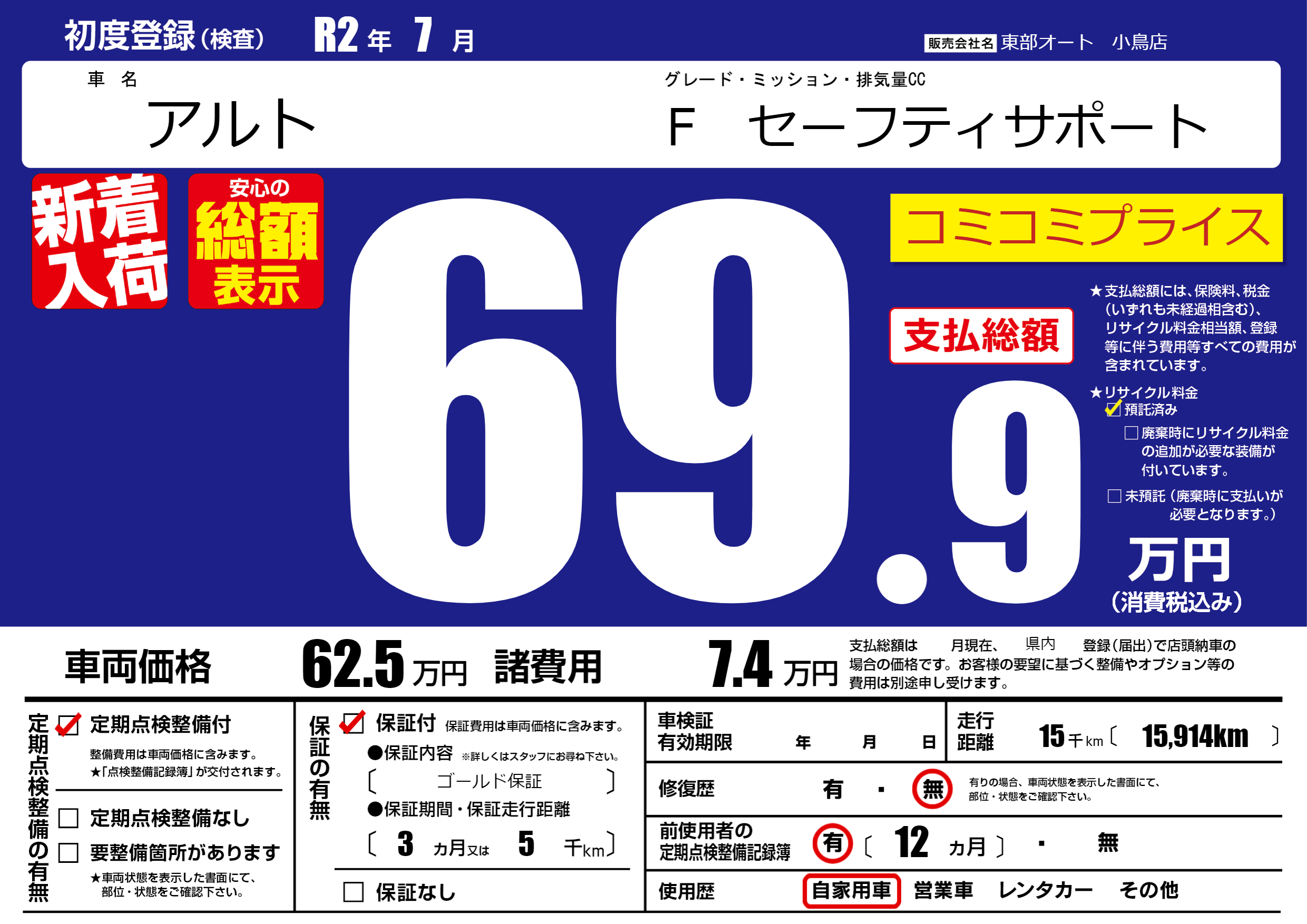 保証付き 保証内容( ゴールド保証) 3ヶ月または5千km |