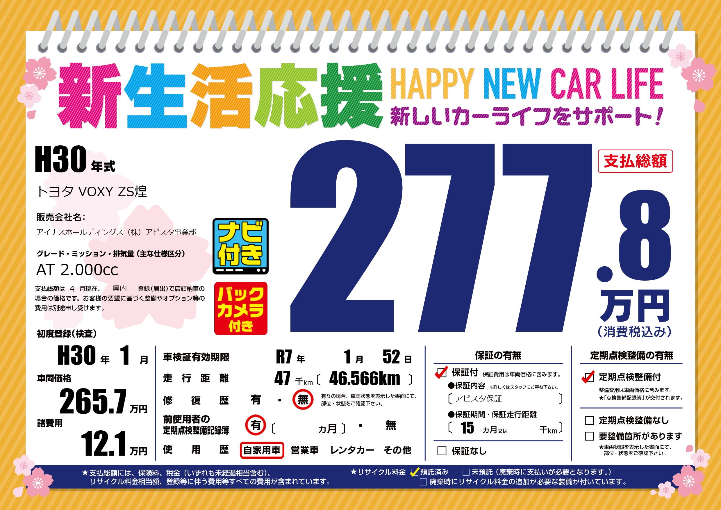 | 車検制限 | R7年 1月 52日 | ||