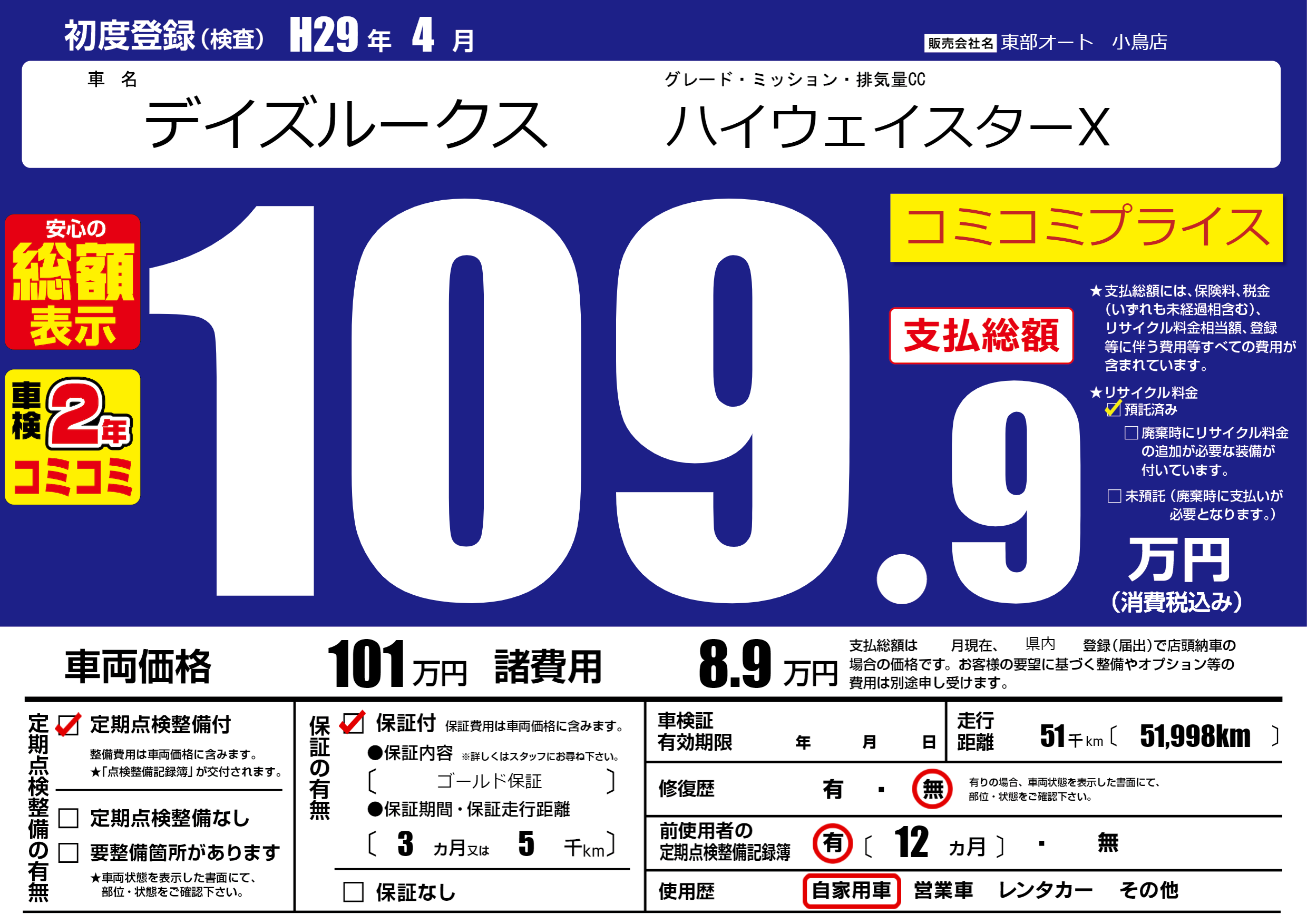 | 定期点検整備 | 定期点検整備あり | ||