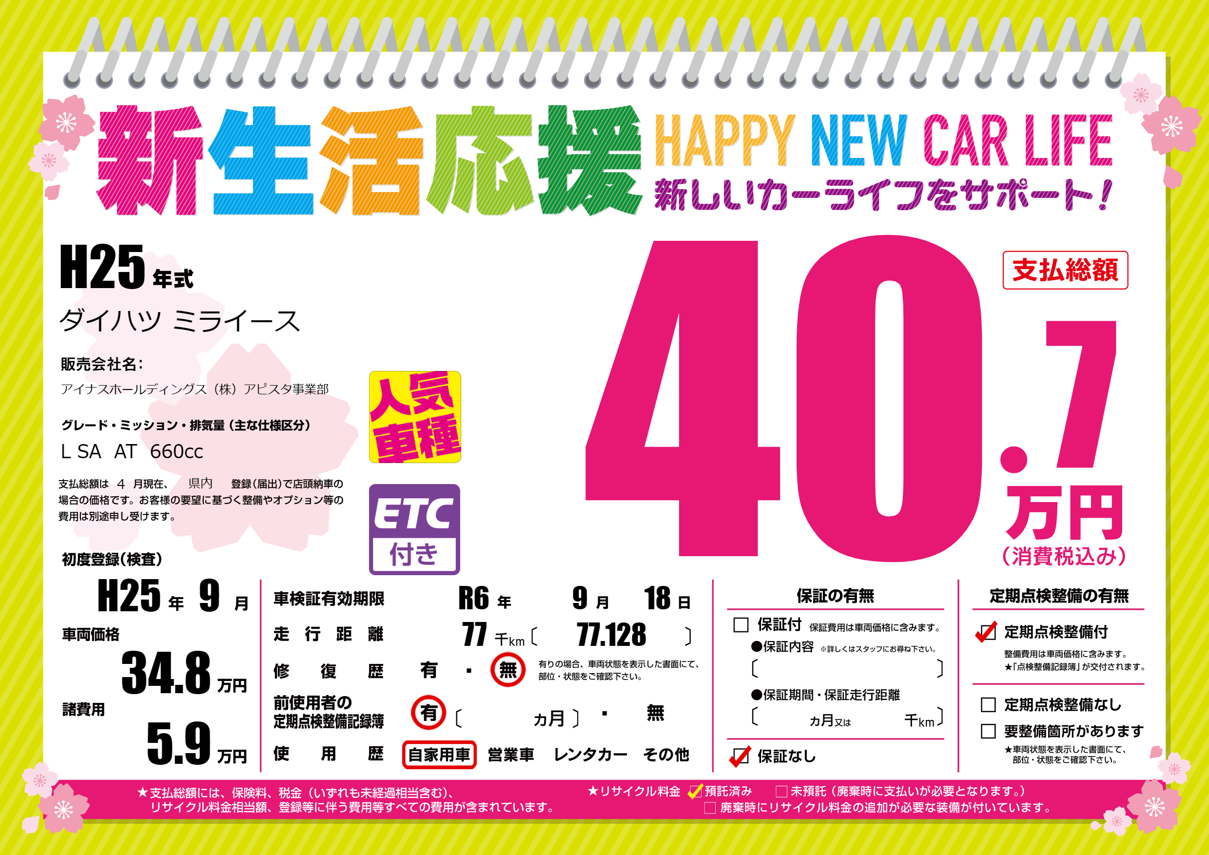 | 車検制限 | R6年 9月 18日 | ||