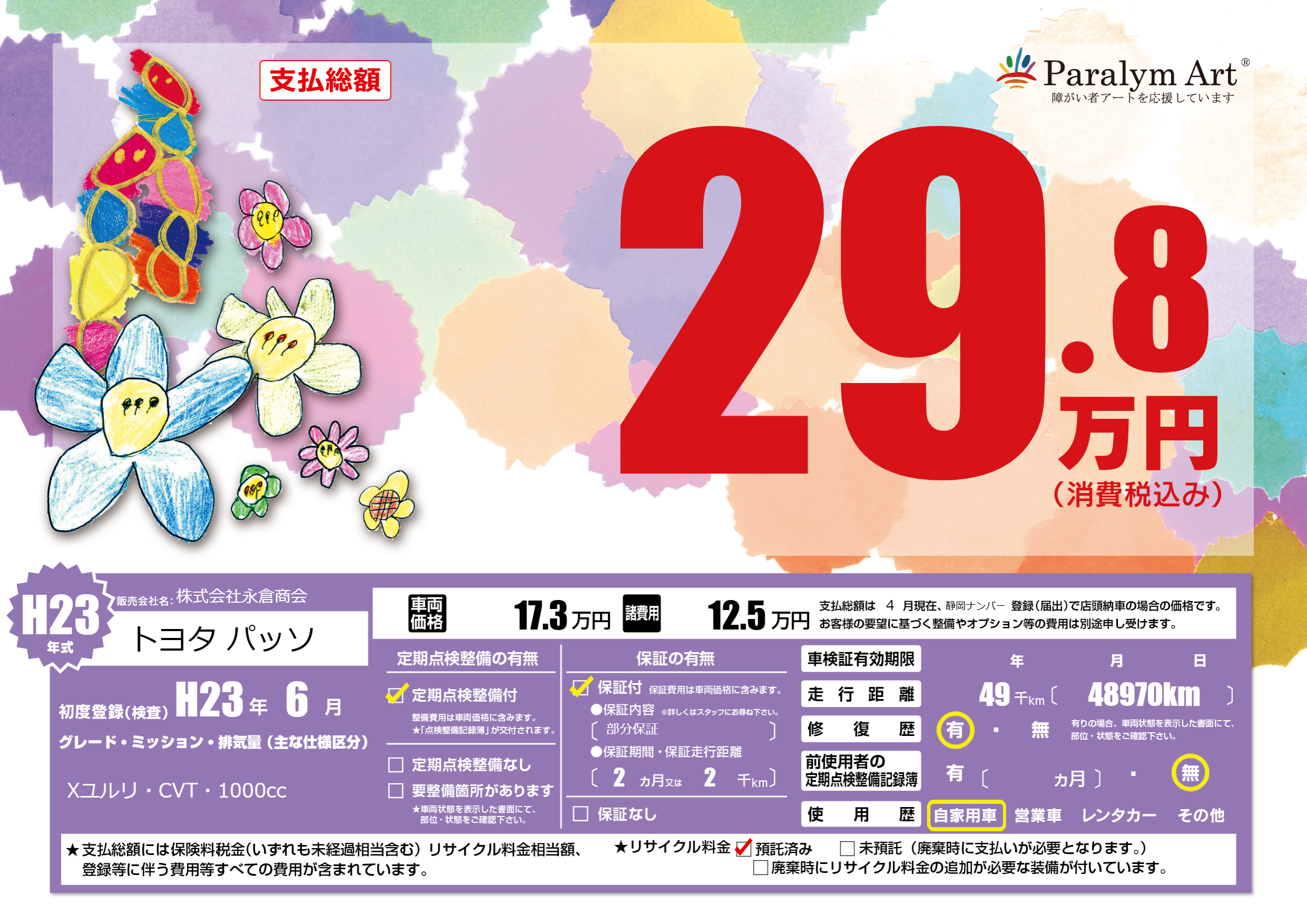 | 走行キロ | 4.9万km | 初年度登録 | H23年6月 |